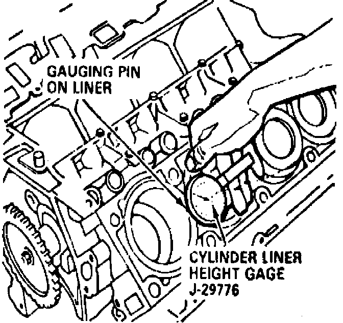 5. If new liner and piston assembly is to be installed, or if original block experienced overheating, then cylinder liner height must be gauged.