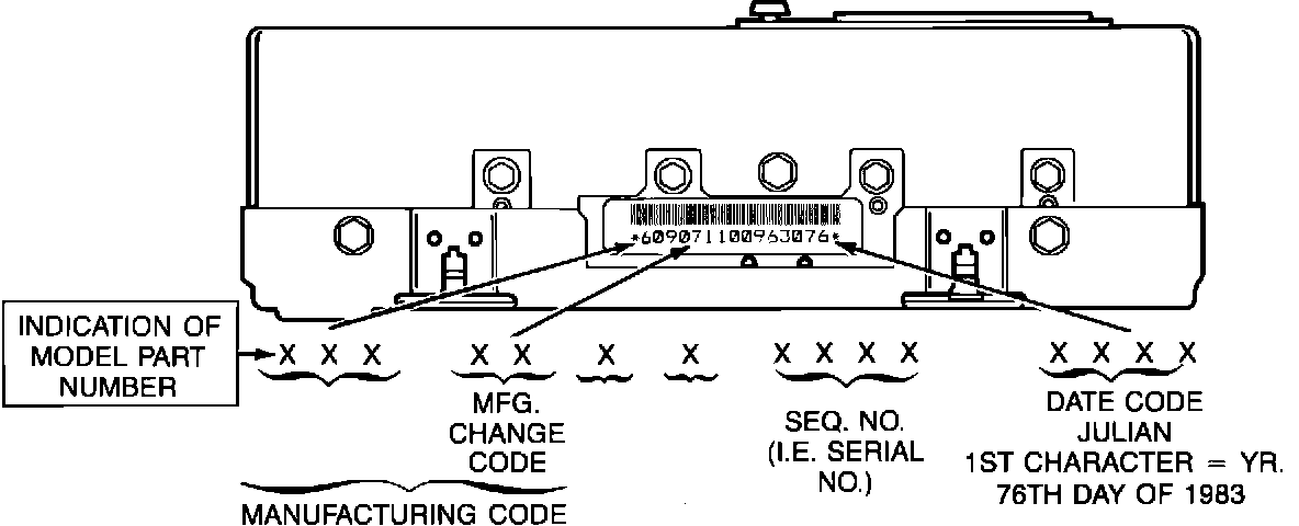 A. A manufacturing code (first five digits) in the 15-digit ECM side rail number is 60907 (see Figure 1) and a letter "C" or higher appears either below the DE-GM logo or above the service part number, indicating a reworked unit (see Figures 2 and 3), or