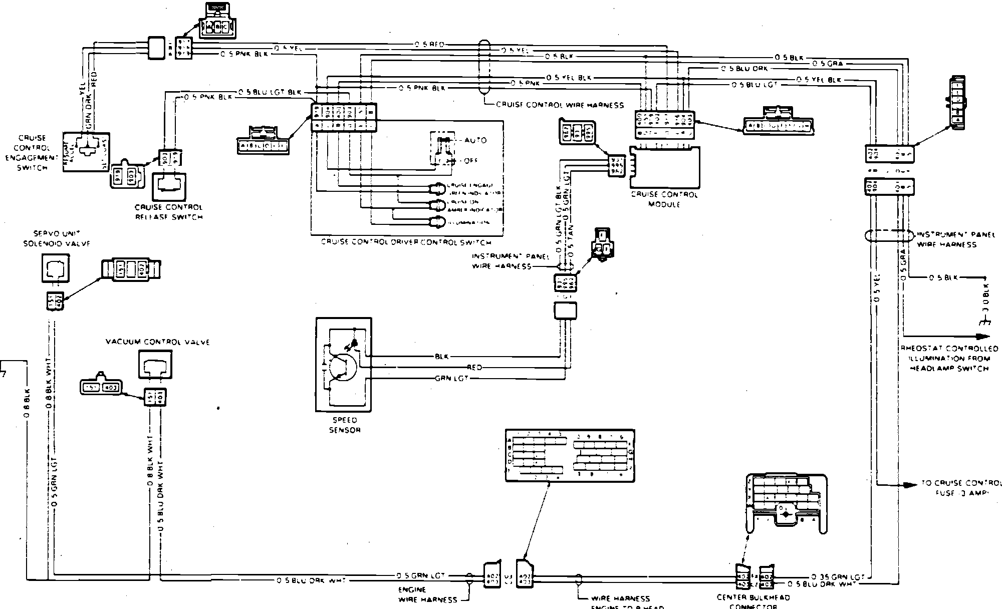 Fig. 5 Electronic cruise control wiring diagram. 1982---84 All with diesel engine except Eldorado & Seville with digital instrument cluster: