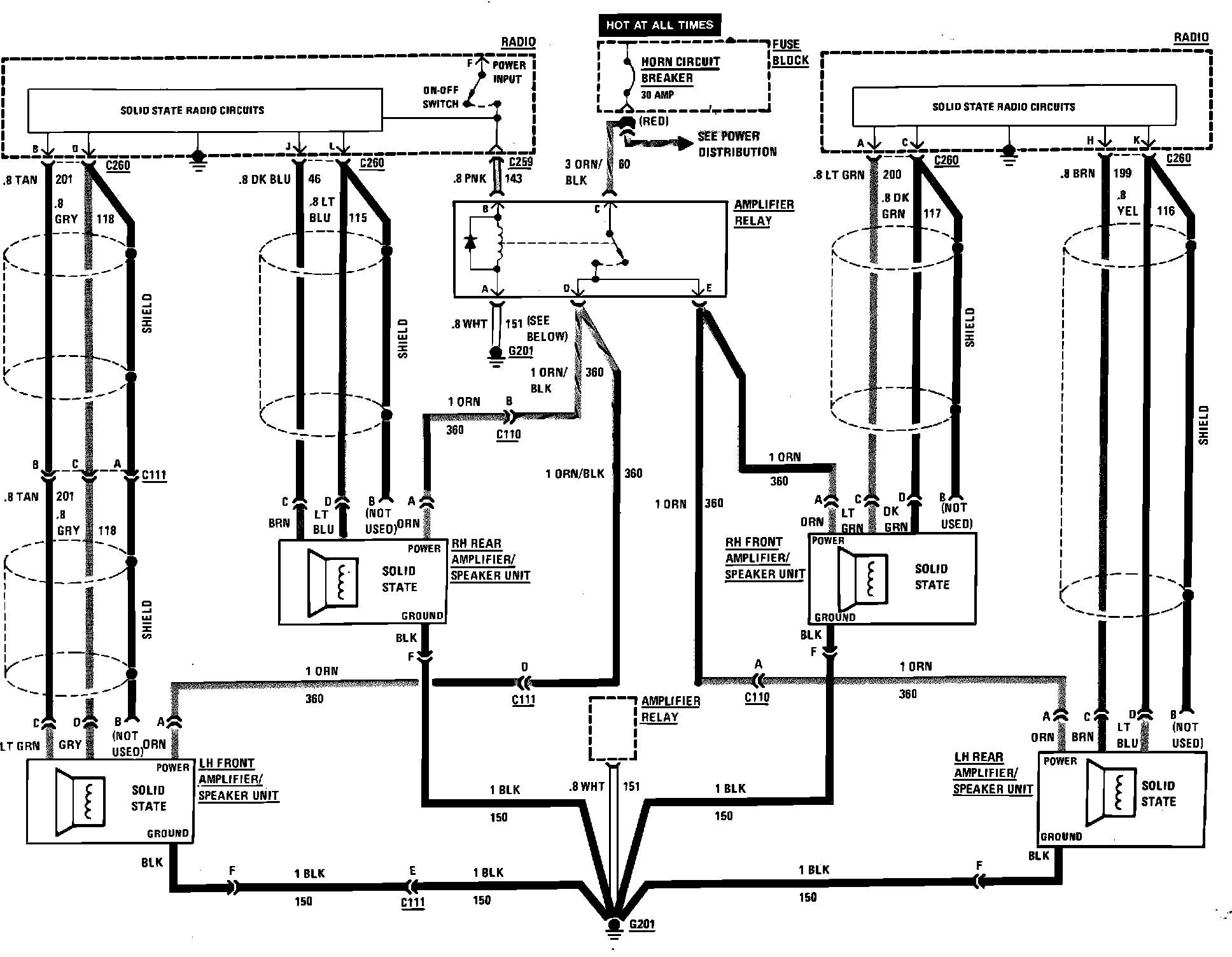 Radio Wiring Circuit (Delco-Bose System):