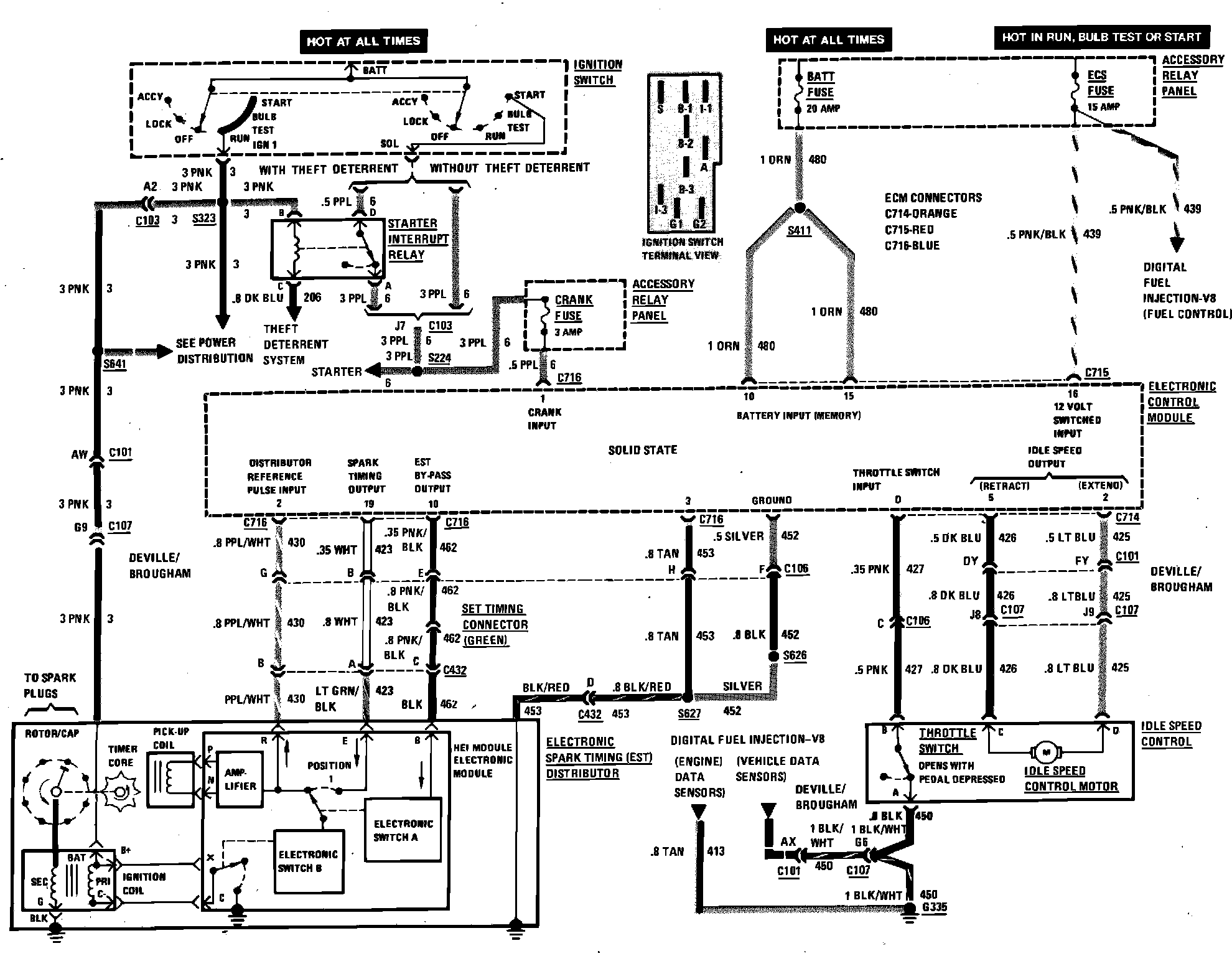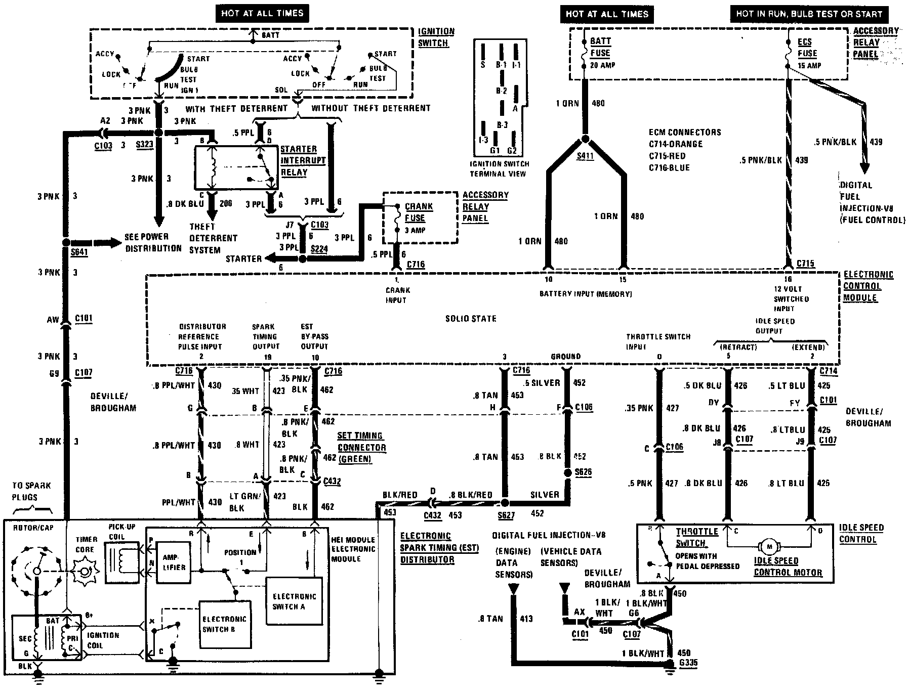 Digital Fuel Injection (ECM Power, Idle Speed Control & Ignition System) Wiring Circuit: