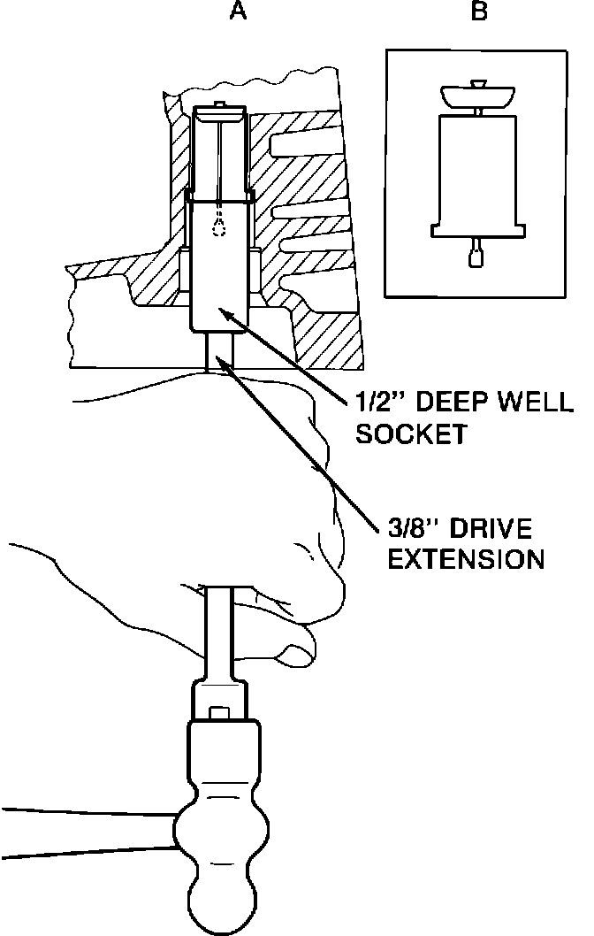 2. Install a service part pump intake check valve (P/N 8639810) into the case pump intake hole (refer to Figure 1). This can be done by using a 1/2" deep well socket and extension, or equivalent, as a driver. Be sure that the valve is fully seated and the valve stem undamaged after installation.