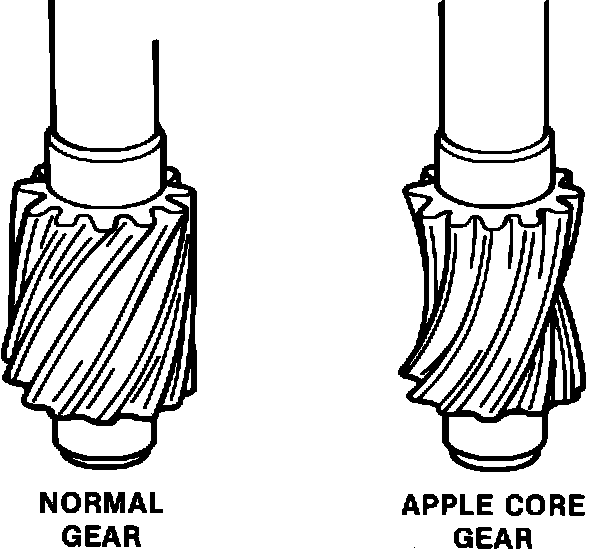 Some Eldorados and Sevilles may experience a final drive noise and/or loss of drive due to an overheated final drive pinion bearing. A preliminary sign of this condition could be a loss of upshifts due to a worn governor gear in the transmission (appearing to be "apple cored", refer to Figure 1). Therefore, the final drive pinion bearings should also be replaced at this time.