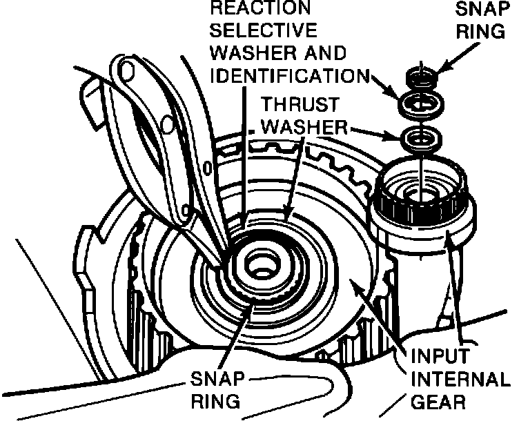 2. Upon removal, disassemble the transmission to the point such that the snap ring that retains the output shaft to the input internal gear can be removed (refer to Figure 2).