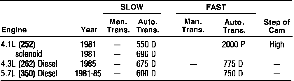 Idle Speed W/O Computer Control Specifications: