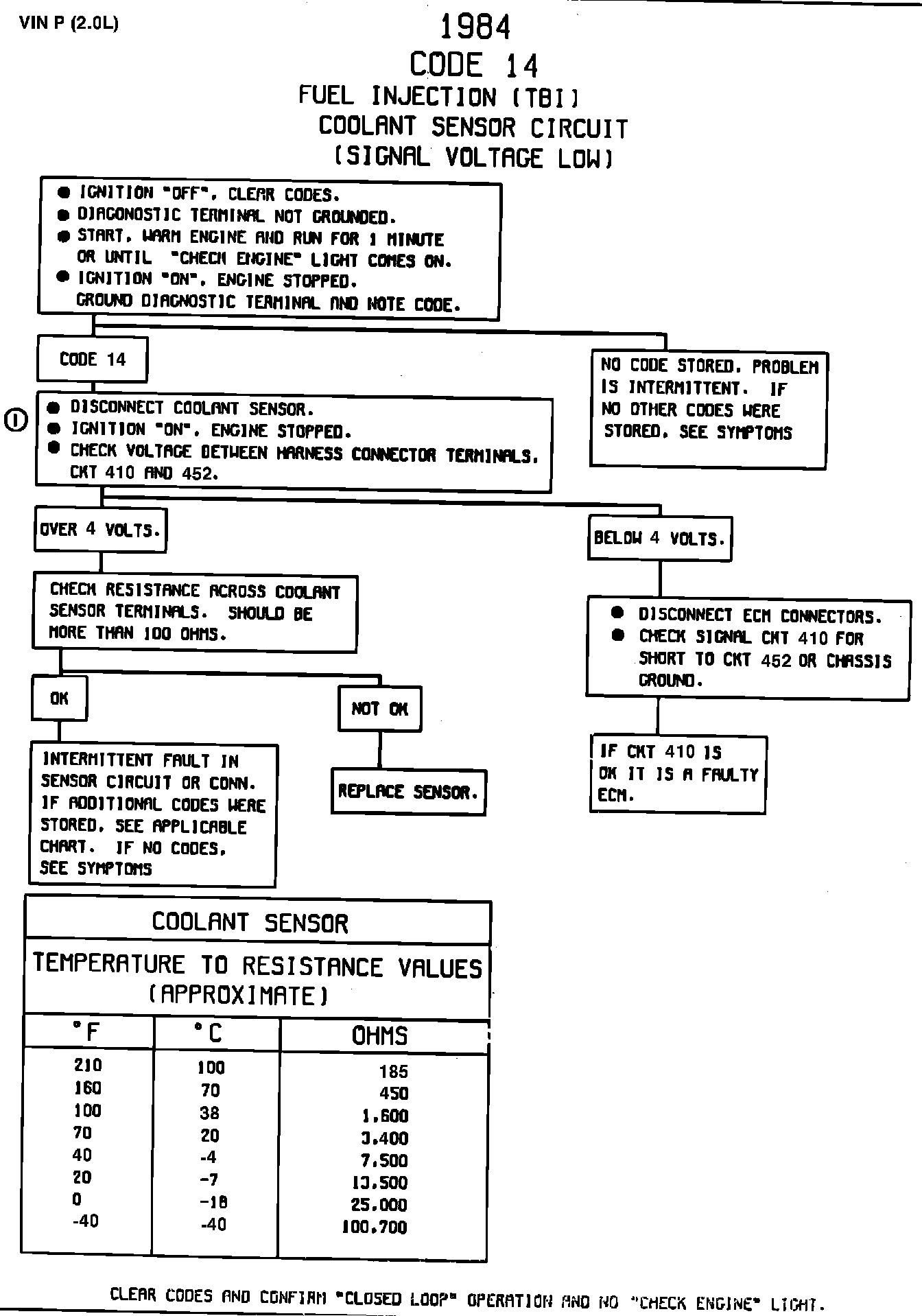 CODE 14, COOLANT SENSOR (SIGNAL VOLTAGE LOW)