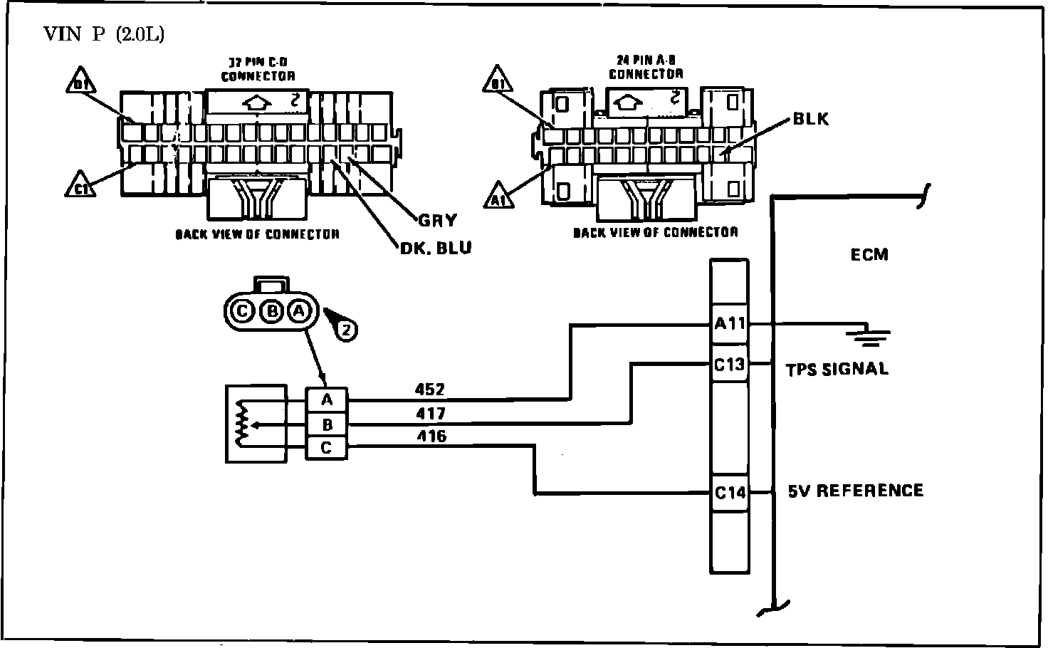 Fig. 075 - Wiring Diagram for Code 21 Throttle Position. VIN P: