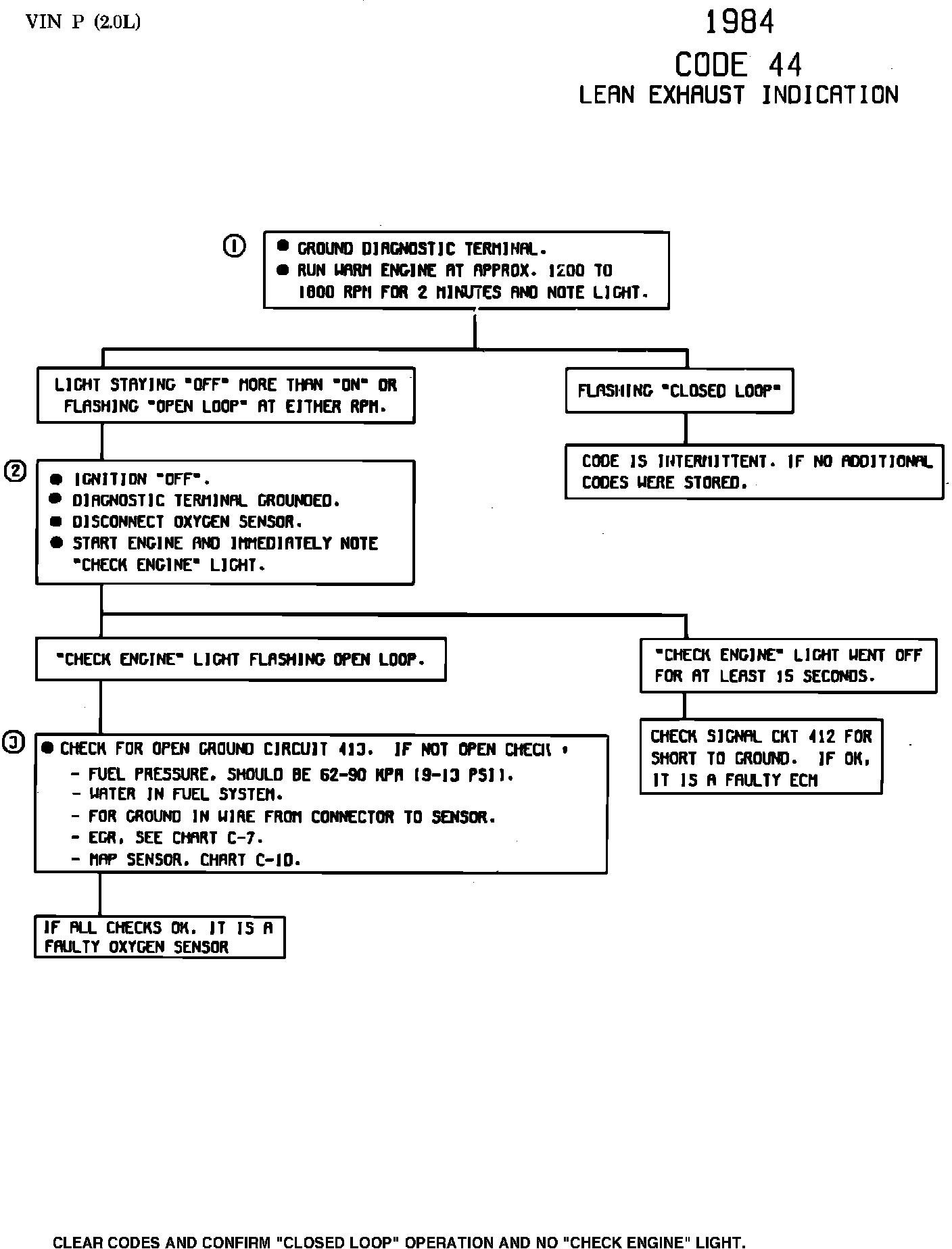 - If the above are OK, and the instructions at the top of the chart will still set a Code 44, or "SERVICE ENGINE SOON" light is "off" more than "on", or flashing "open loop", it is a faulty Oxygen Sensor.