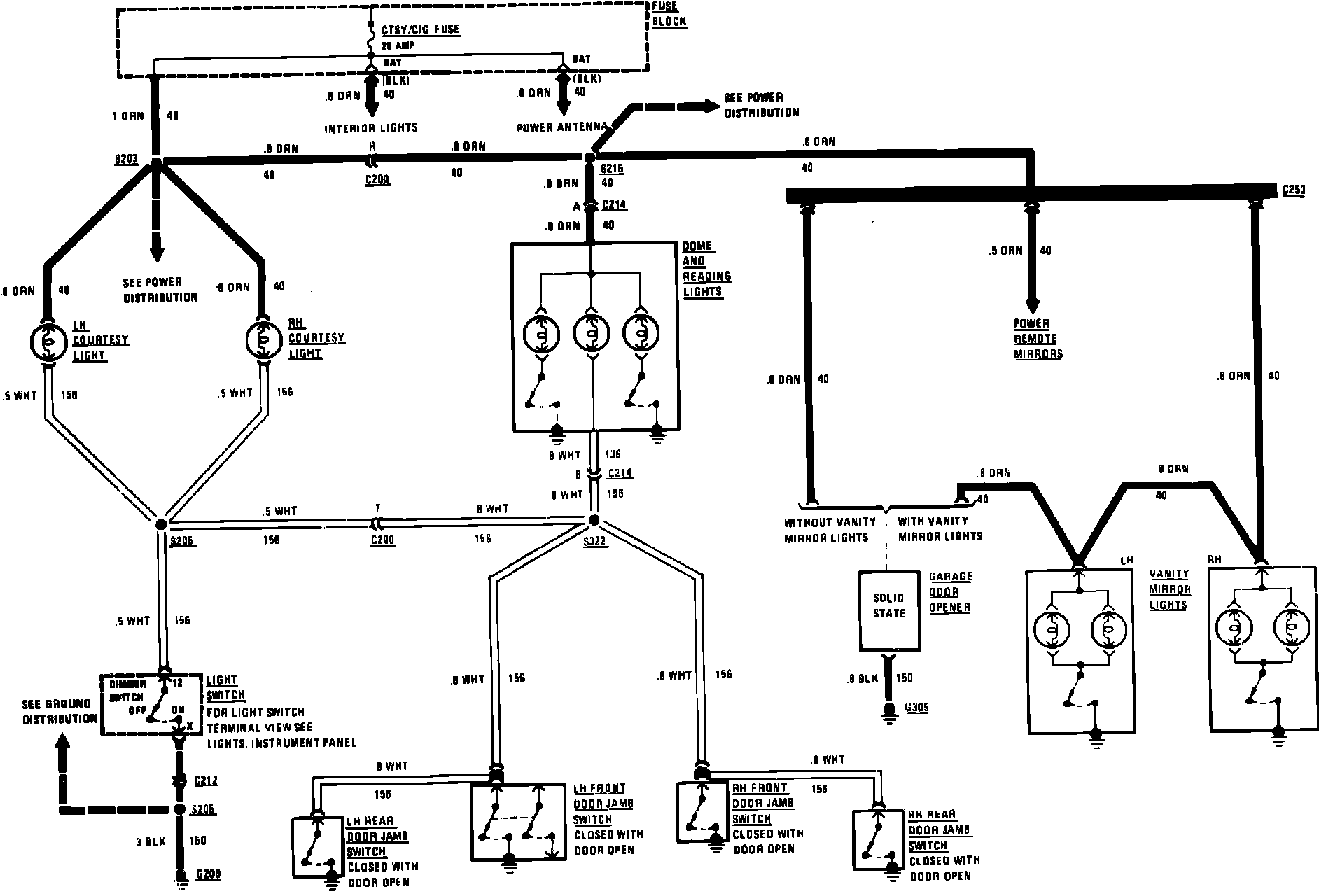 Garage Door Opener & Interior Lighting Wiring Circuit (Less Astro Roof):