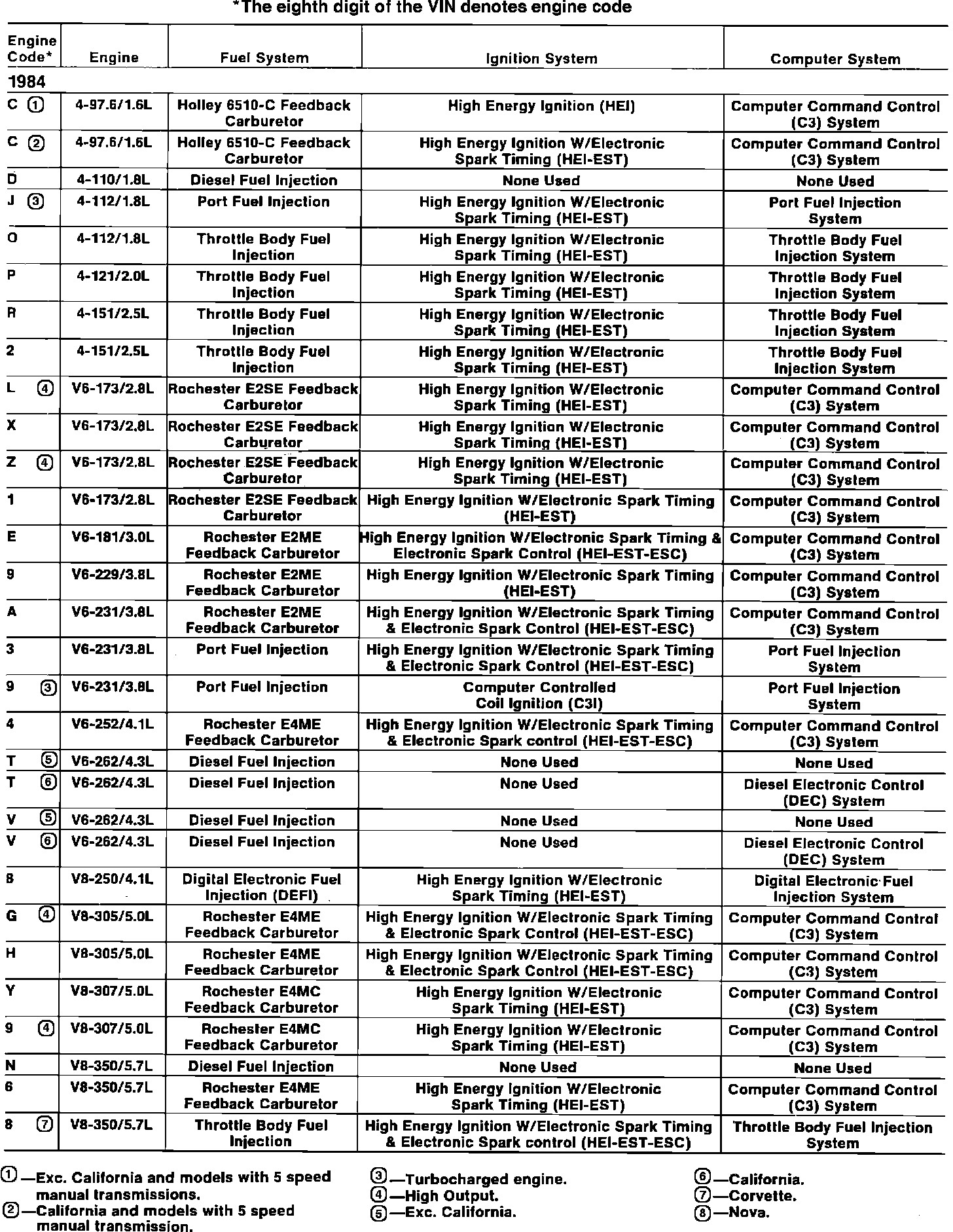 Cimarron L4-121 2.0L