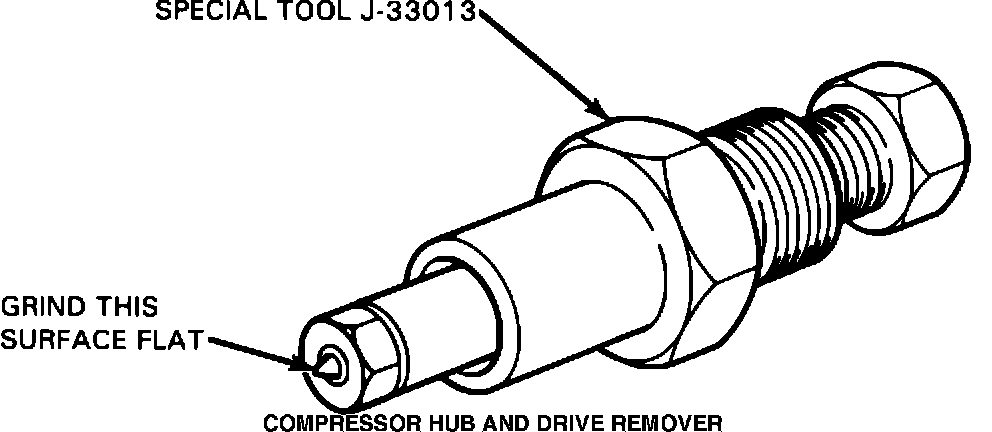 Kent-Moore tool J-33013, the DA-6 A/C compressor hub and drive plate remover and installer, may damage some DA-6 compressor shafts during hub and drive plate removal. To correct this condition, modify the tool as shown in the figure below.