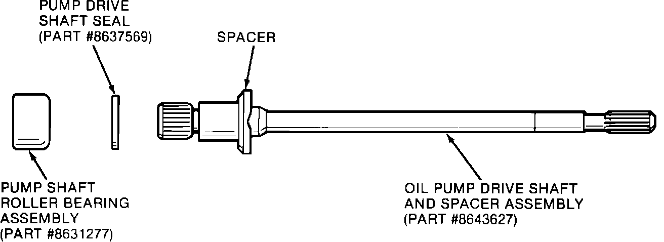 1. The new oil pump drive shaft and spacer assembly has a thinner spacer and a longer bearing journal diameter to accommodate the new pump shaft bearing and seal assembly (Figure 2).