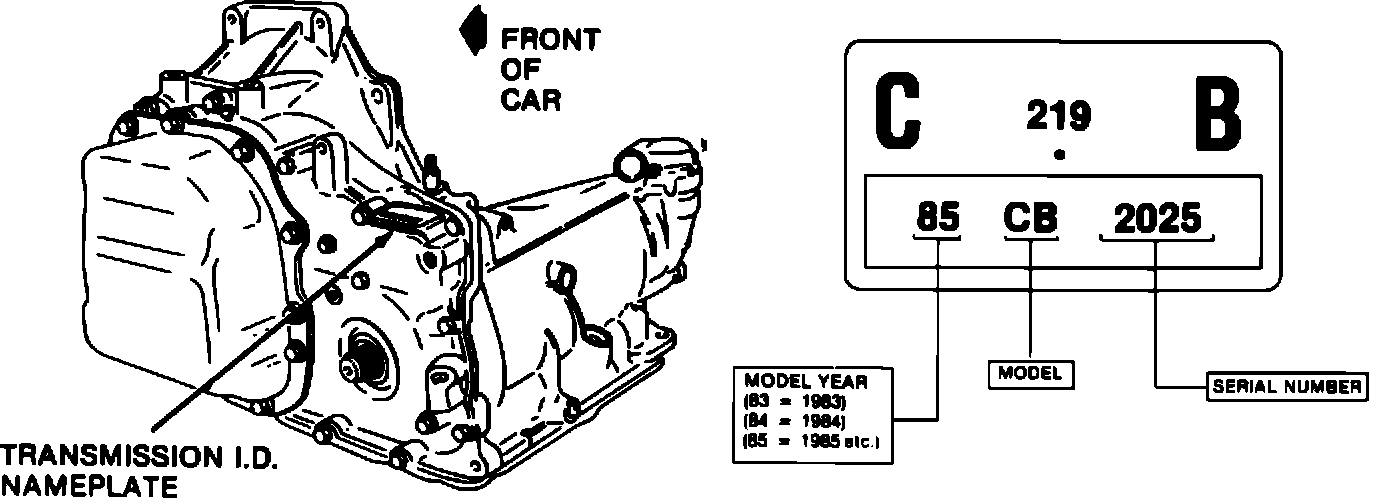 FIGURE 1 - THM 125C TRANSMISSION I.D. NAMEPLATE: