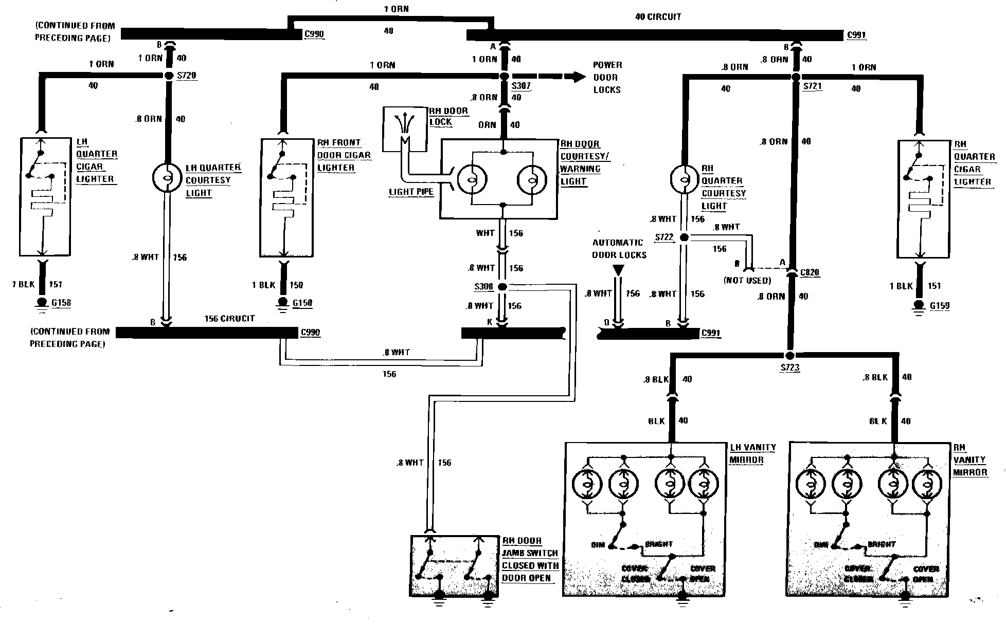 Cigar Lighter, Garage Door Opener & Interior Lighting Wiring Circuit: