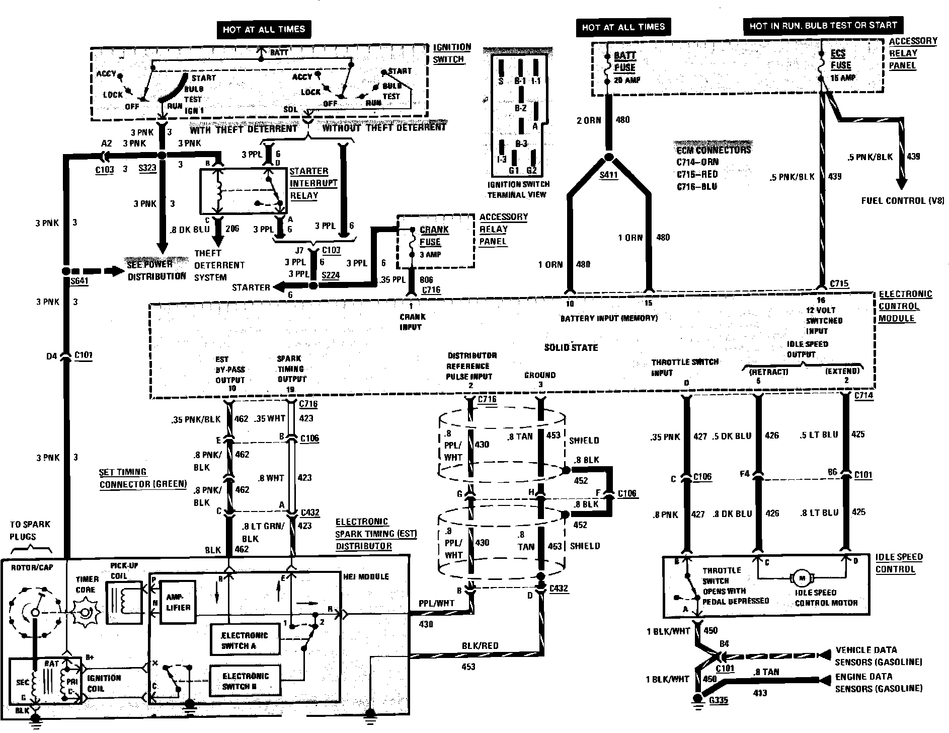 Digital Fuel Injection (ECM Power, Idle Speed Control & Ignition) Wiring Circuit: