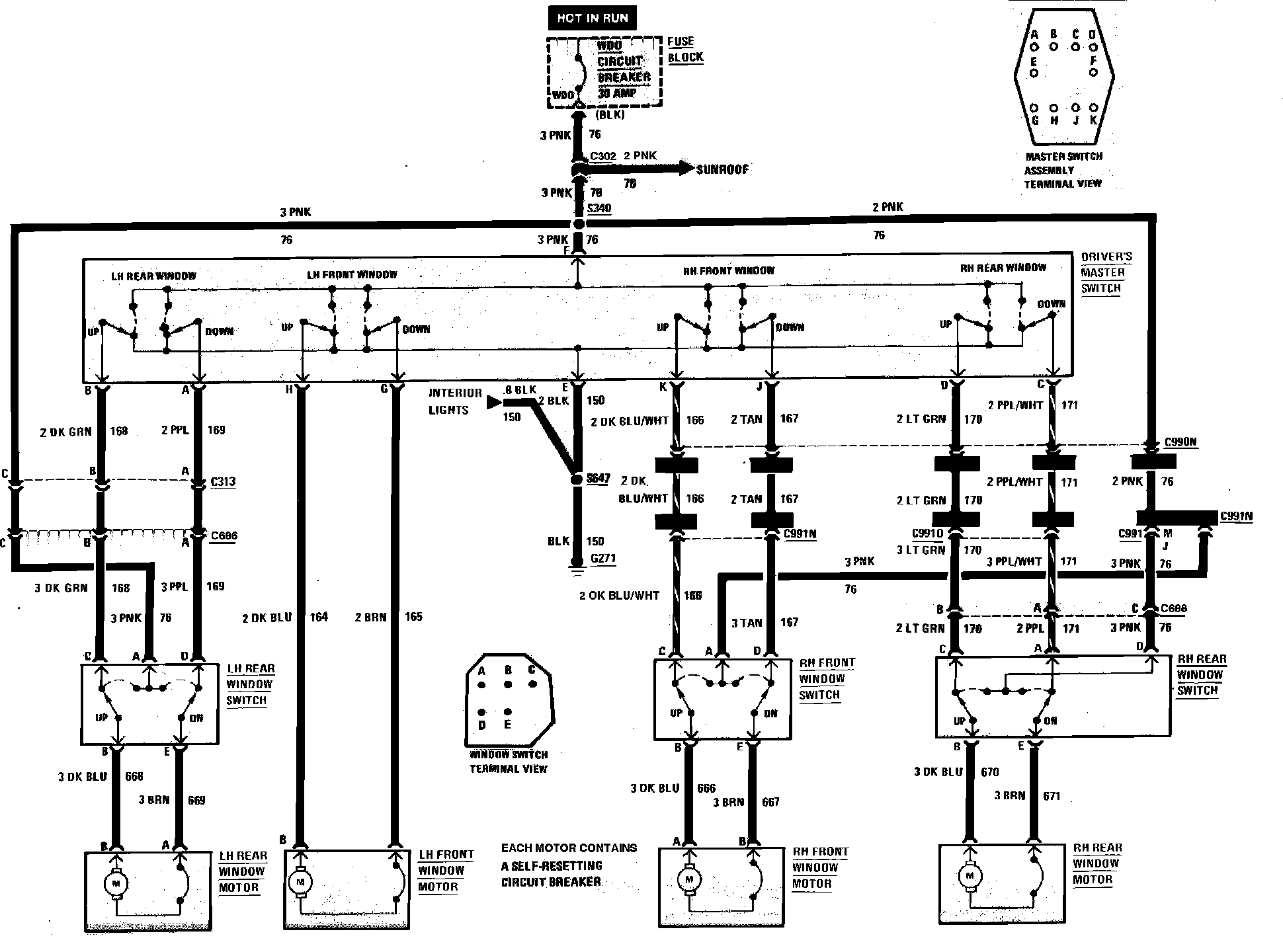 Power Windows Wiring Circuit, Four Door W/Memory Seat: