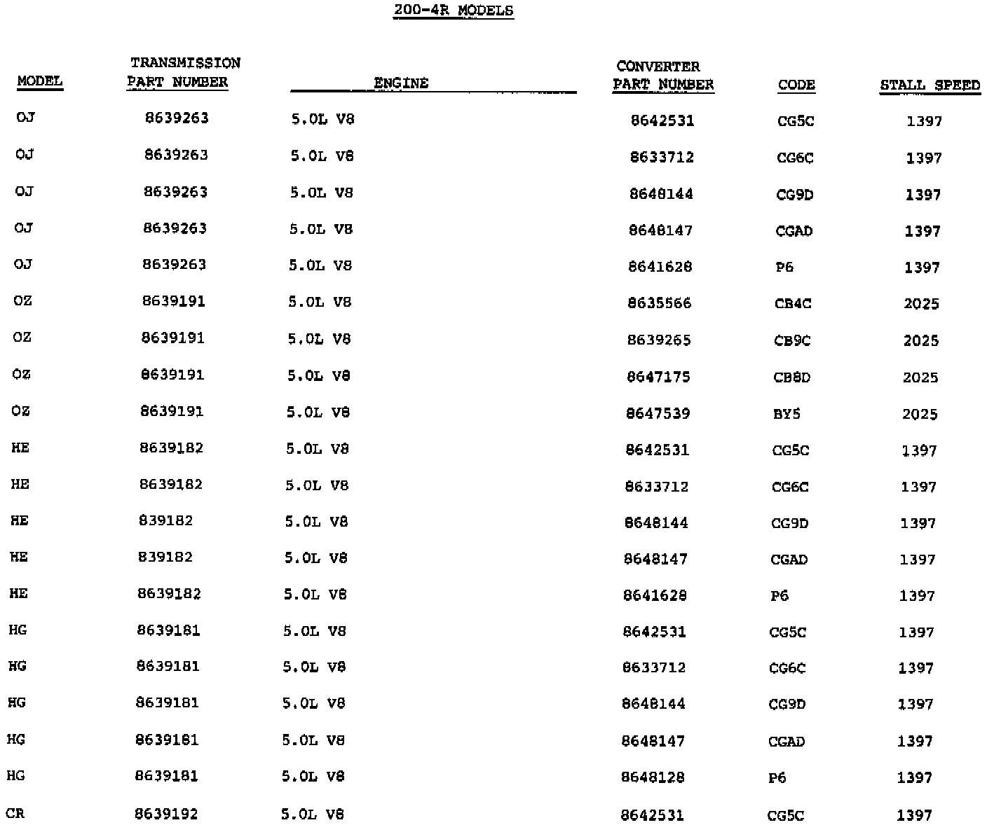 A/T - 200R4 Model & Converter Identification