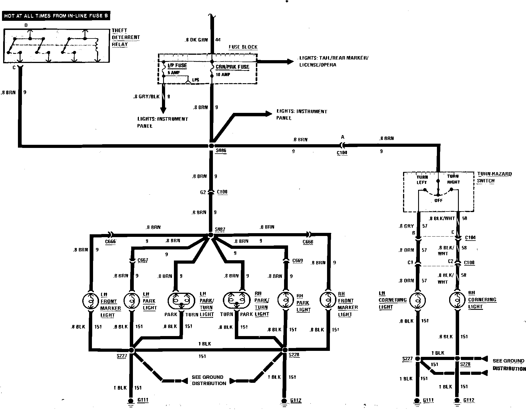 Cornering, Front Marker & Front Park Lighting Wiring Circuit:
