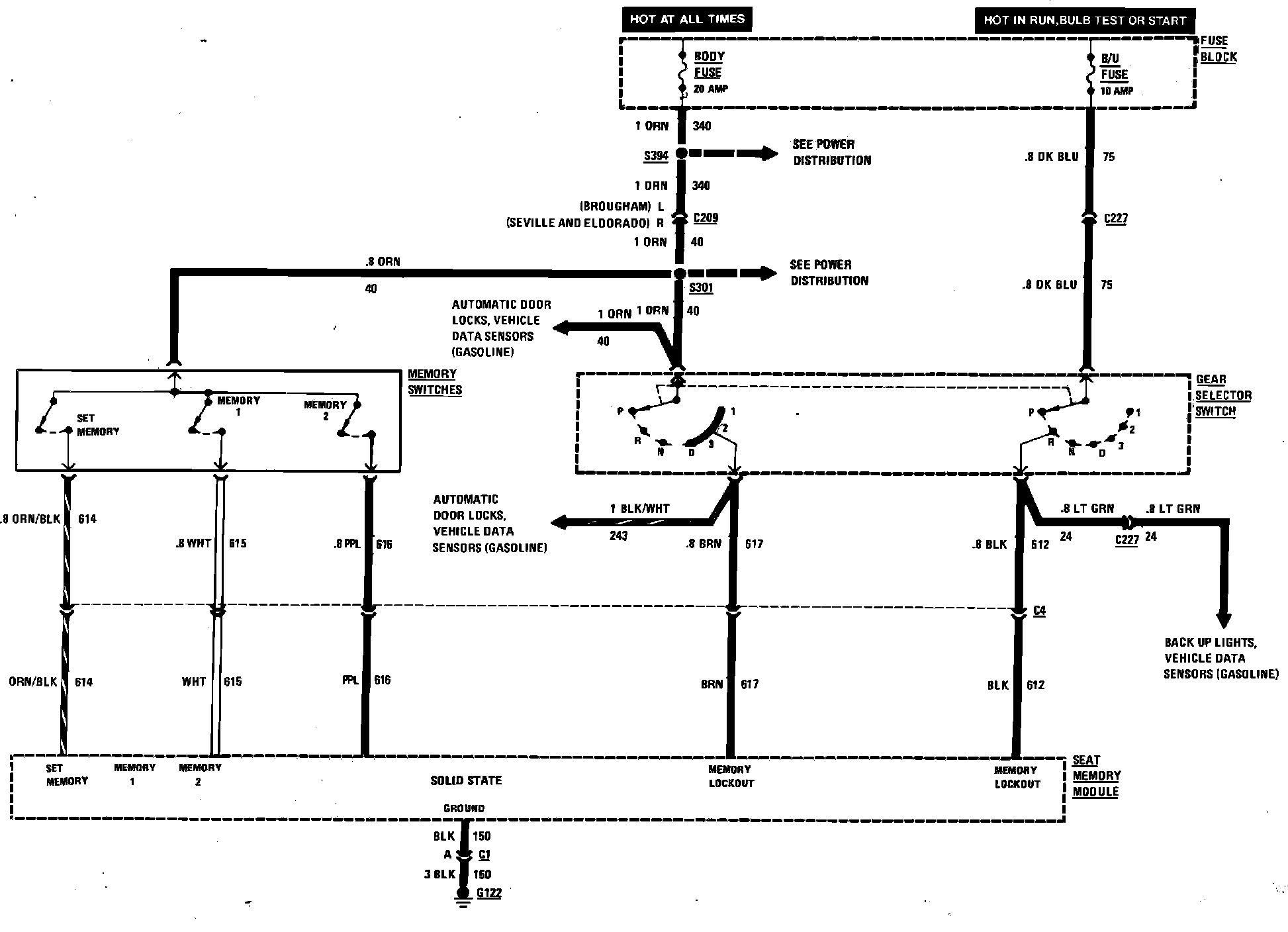 Power Seat (Three Motors W/Memory Less Delco-Bose) Wiring Circuit: