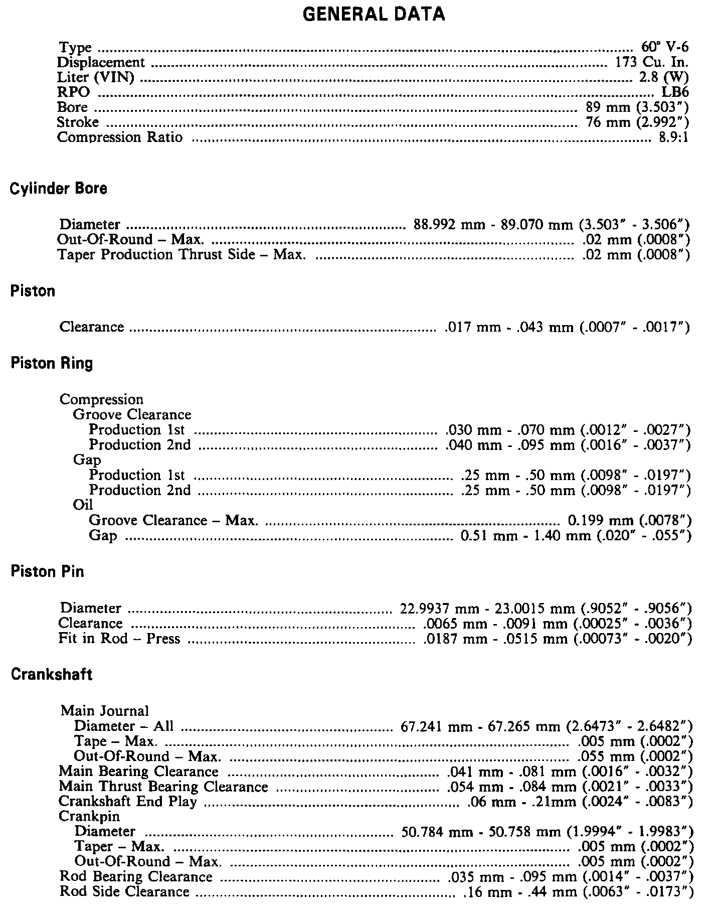 Cimarron V6-173 2.8L