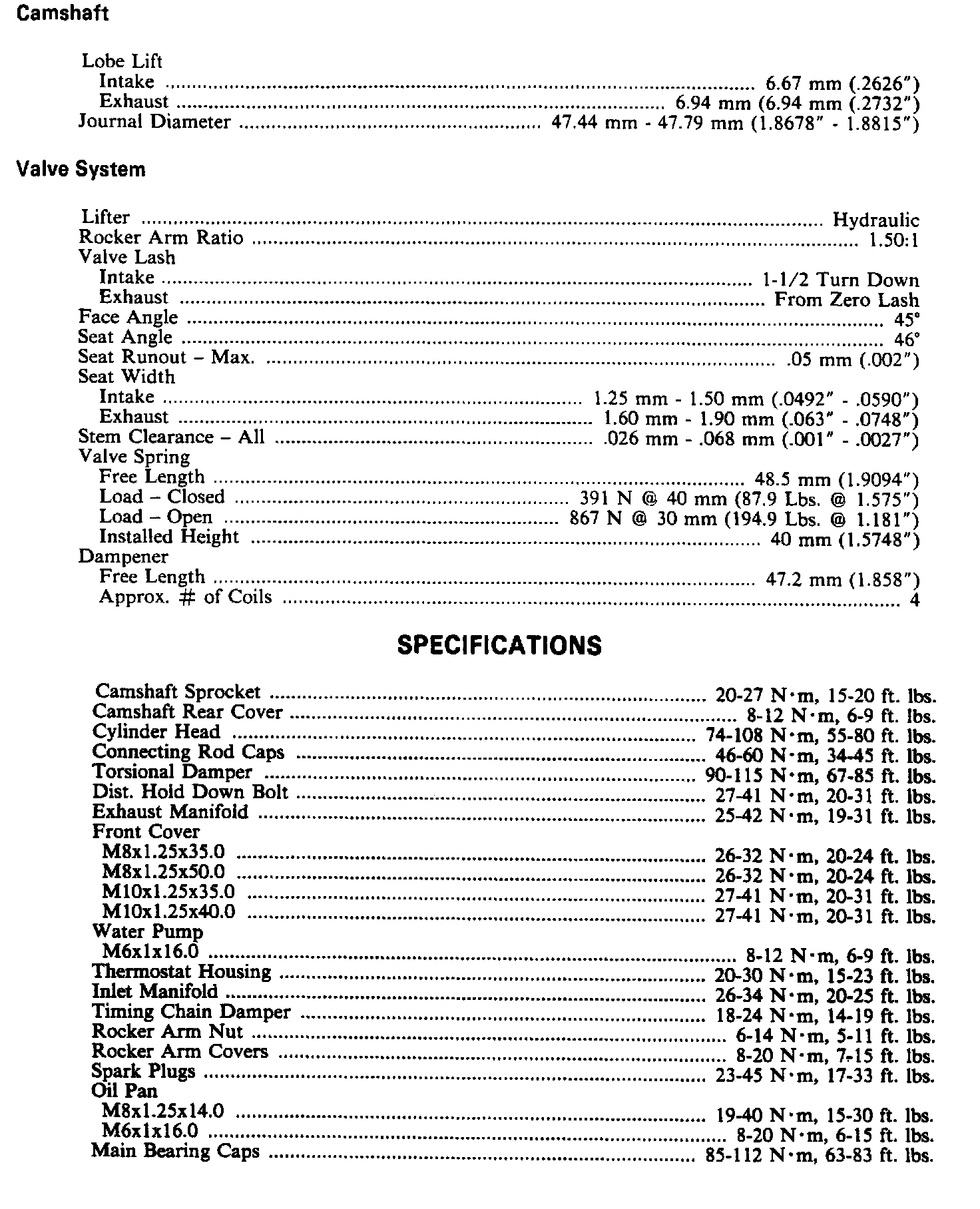 Continued Engine & Torque Specifications: