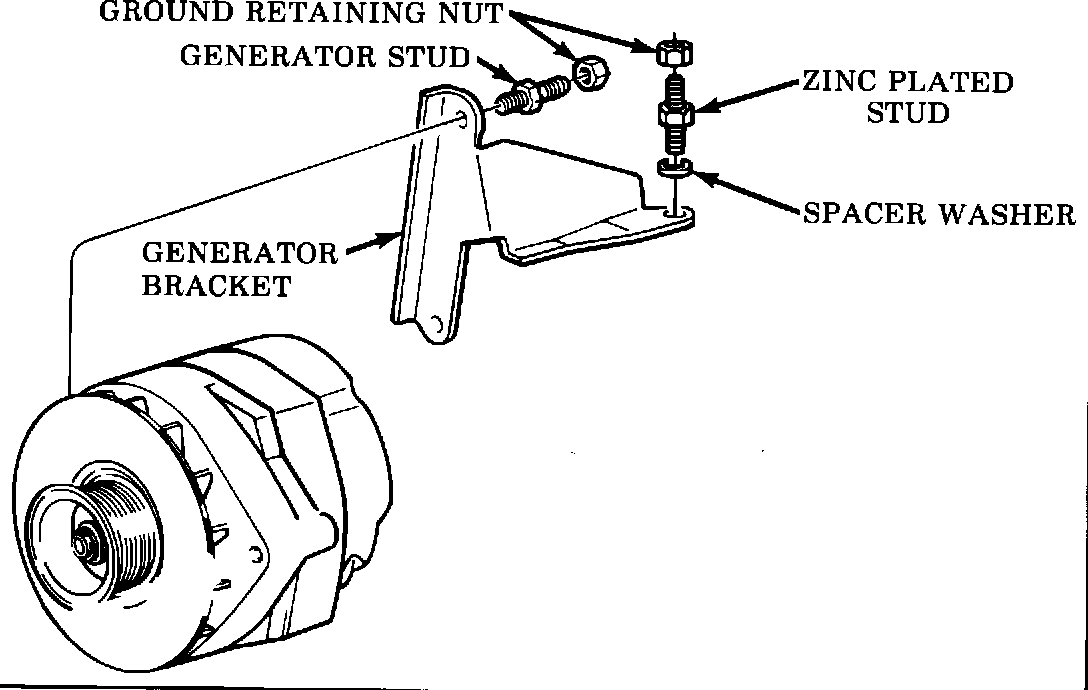 6. Install spacer washer, part number 10019493, onto zinc plated stud, part number 1634167 (refer to Figure 1). The spacer washer is needed to prevent the stud from bottoming out in the generator bracket rear bolt hole.