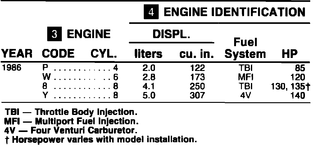 Engine Identification - 1986: