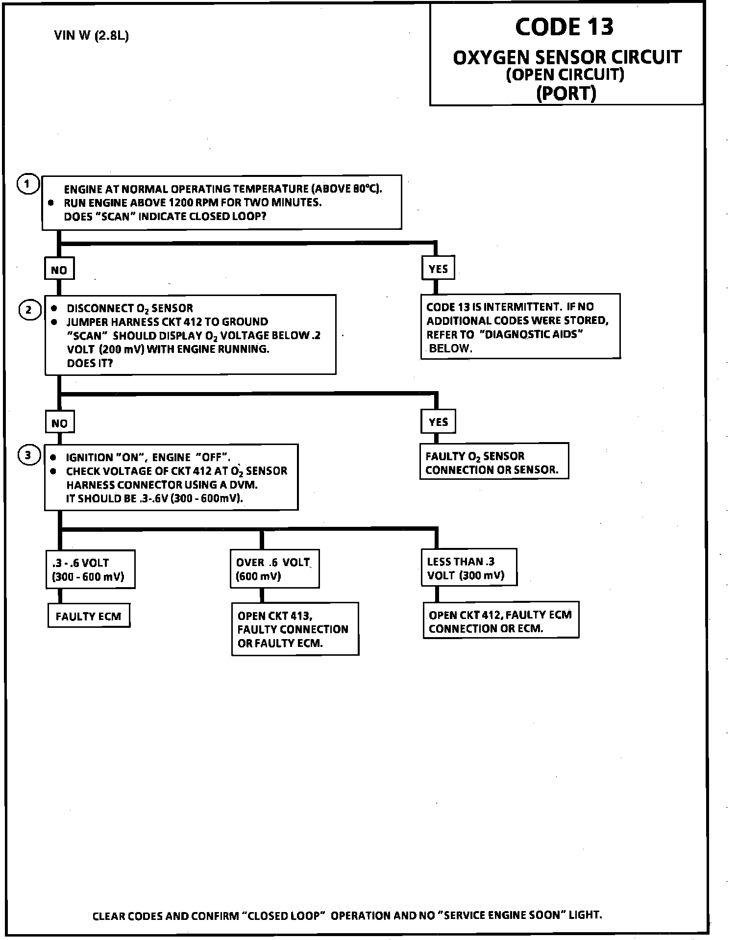 CODE 13 - OXYGEN SENSOR CIRCUIT (OPEN CIRCUIT)