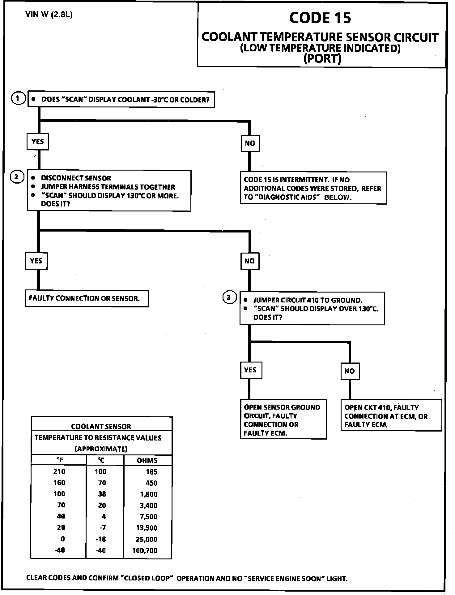 CODE 15 - COOLANT TEMPERATURE SENSOR CIRCUIT (LOW TEMPERATURE INDICATED)