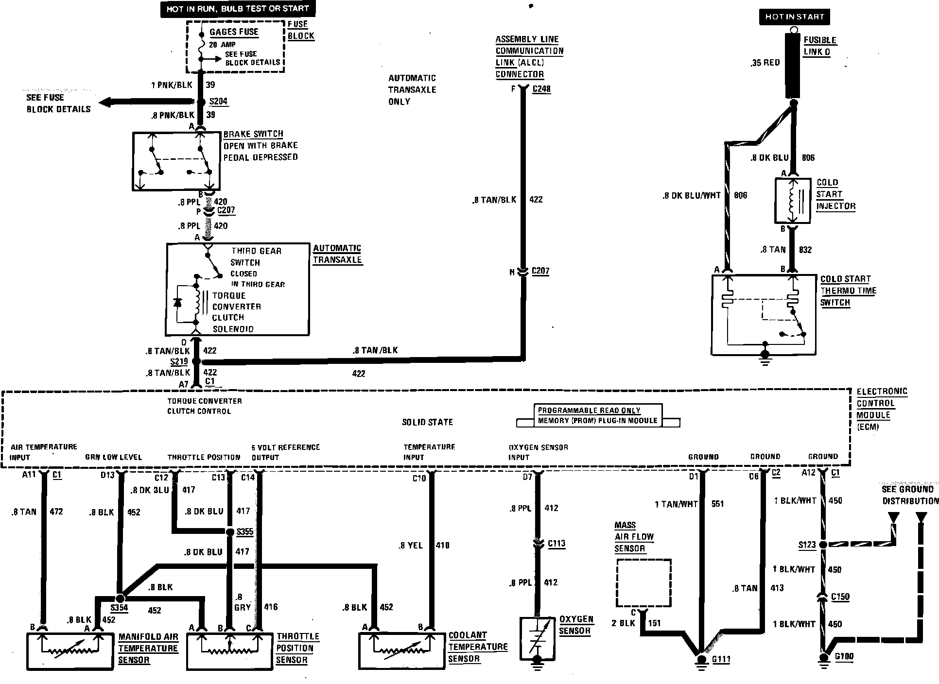 Multi-Port Fuel Injection Wiring Circuit (Cold Start, Engine Data & Torque Converter Clutch):