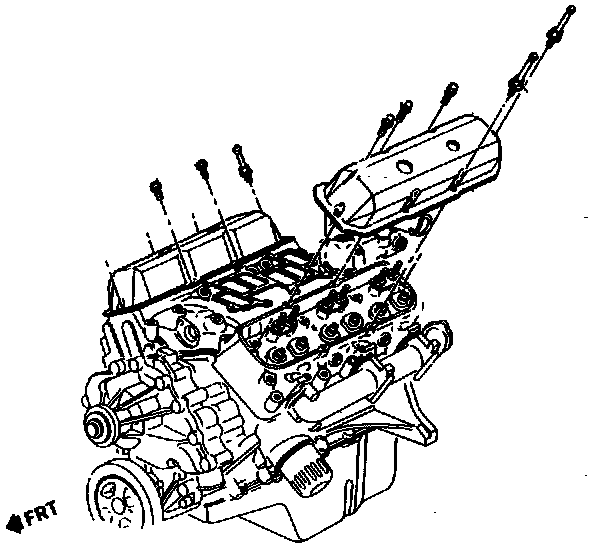 CAUTION If cover adheres to cylinder head, shear off by bumping end of rocker arm cover with palm of hand or soft rubber mallet. If cover still will not come loose, CAREFULLY pry until loose. DO NOT DISTORT SEALING FLANGE.