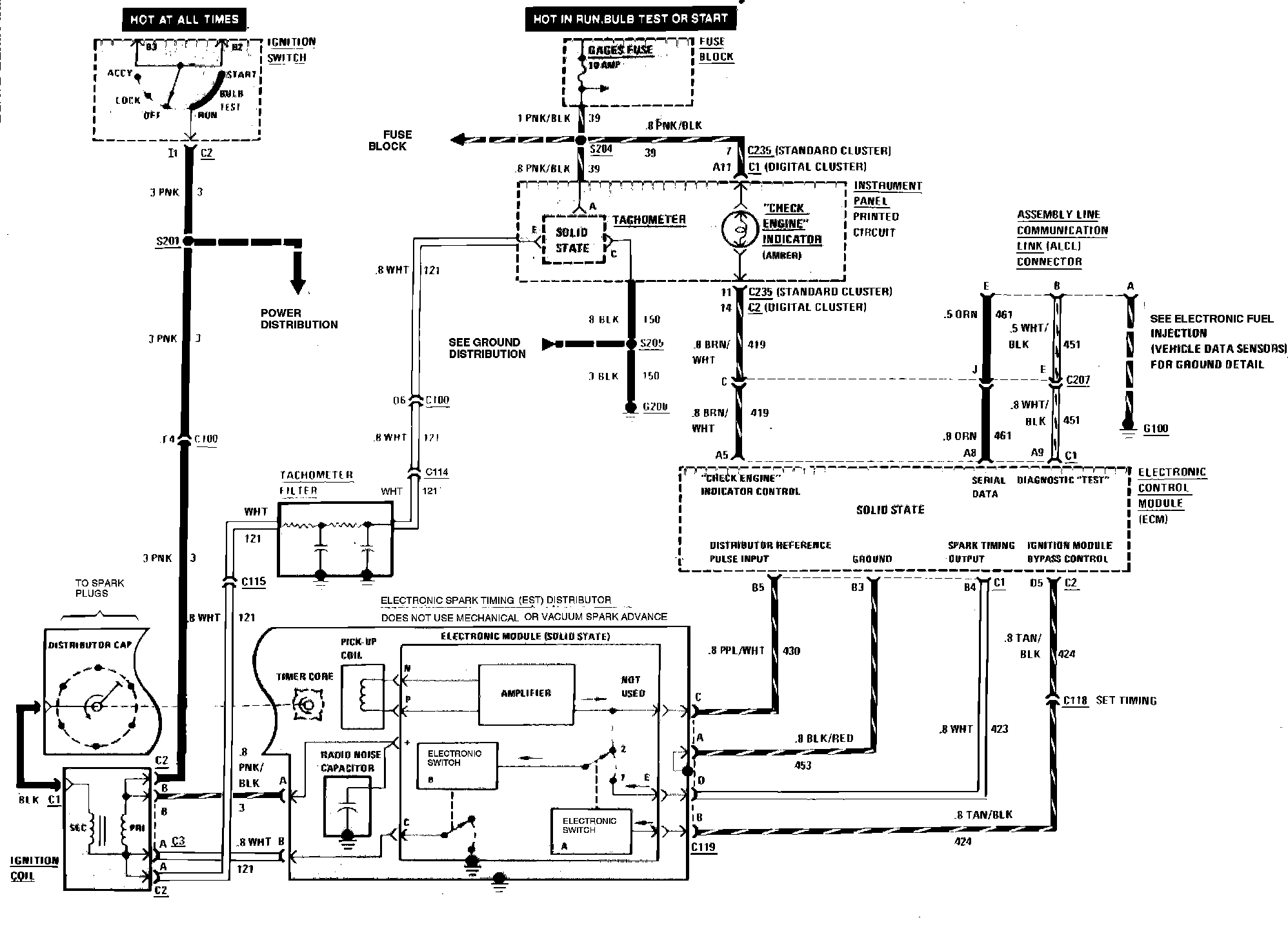 Multiport Fuel Injection (Check Engine Or Service Soon Indicator & Ignition) Wiring Circuit: