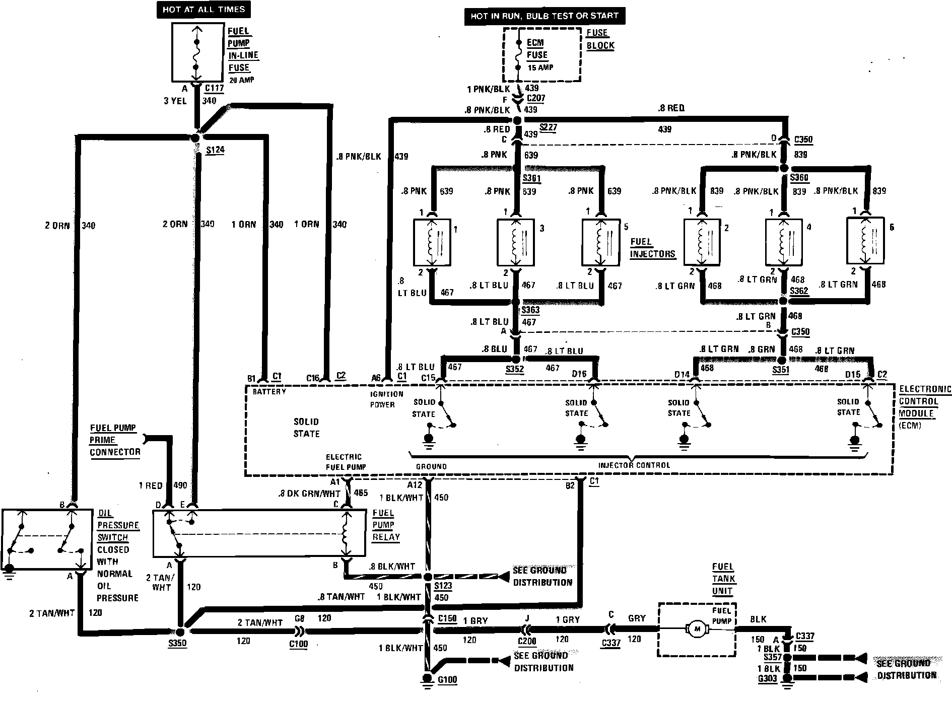 Multi-Port Fuel Injection Wiring Circuit (Fuel Control & Injectors):