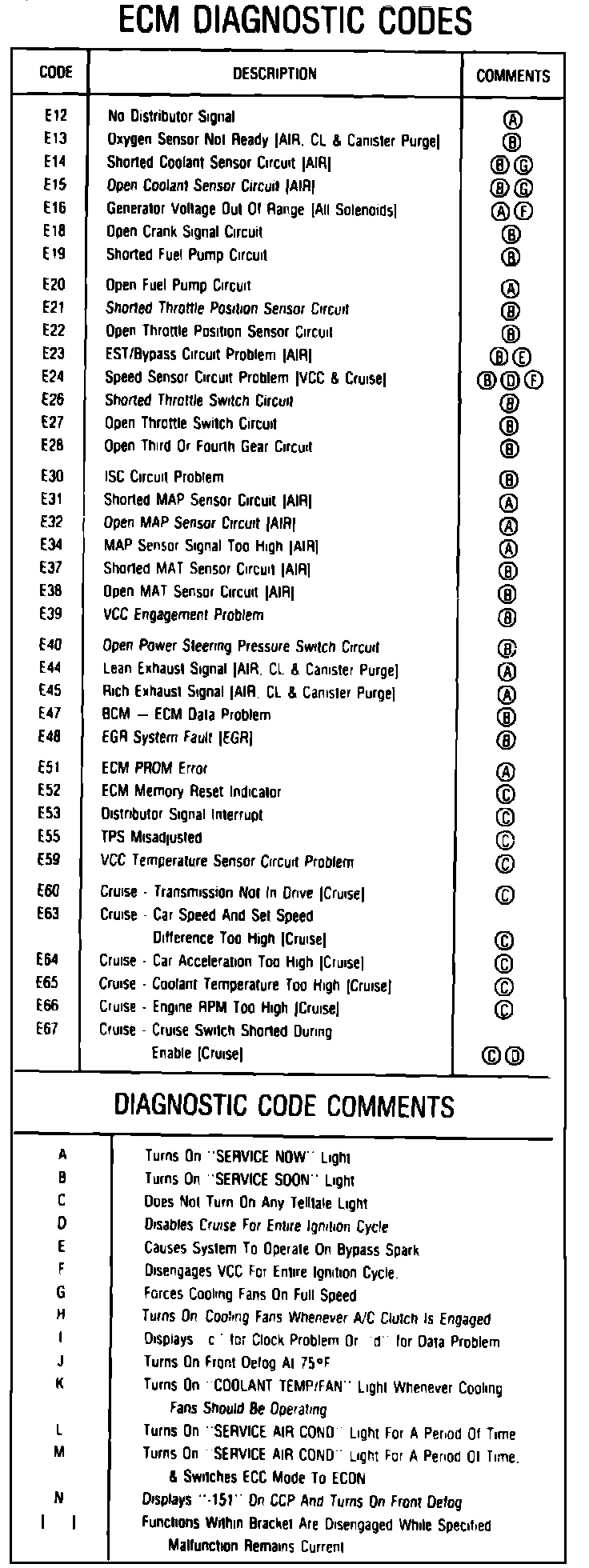 Fig. 2 ECM diagnostic codes & diagnostic code comments: