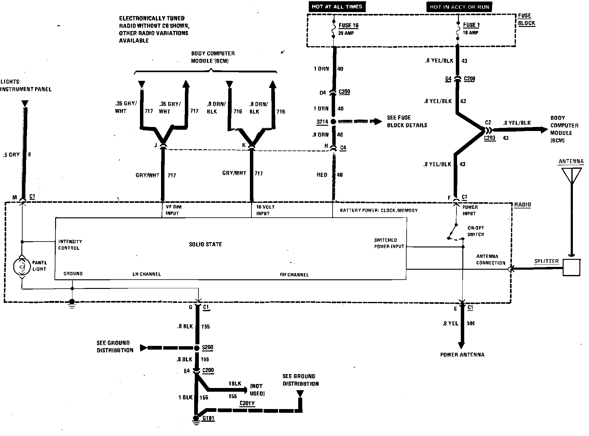 Radio Wiring Circuit (Part 1 of 2). With Electronic Tuning, Less CB: