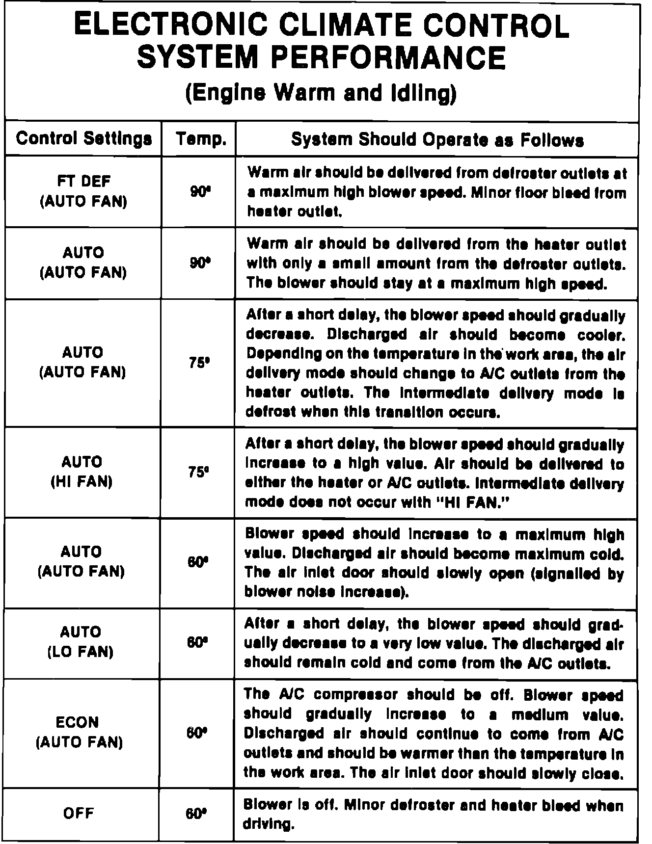 Fig. 5 Electronic climate control system performance chart: