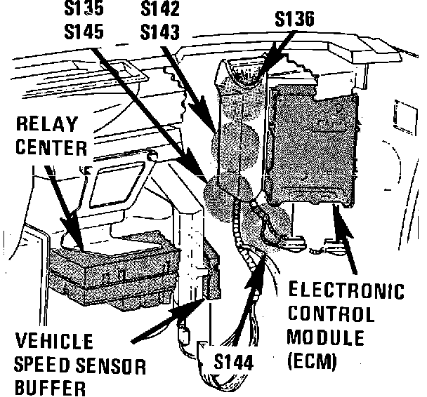 The Electronic Control Module (ECM) is located behind RH side of Instrument Panel (I/P), near shroud.