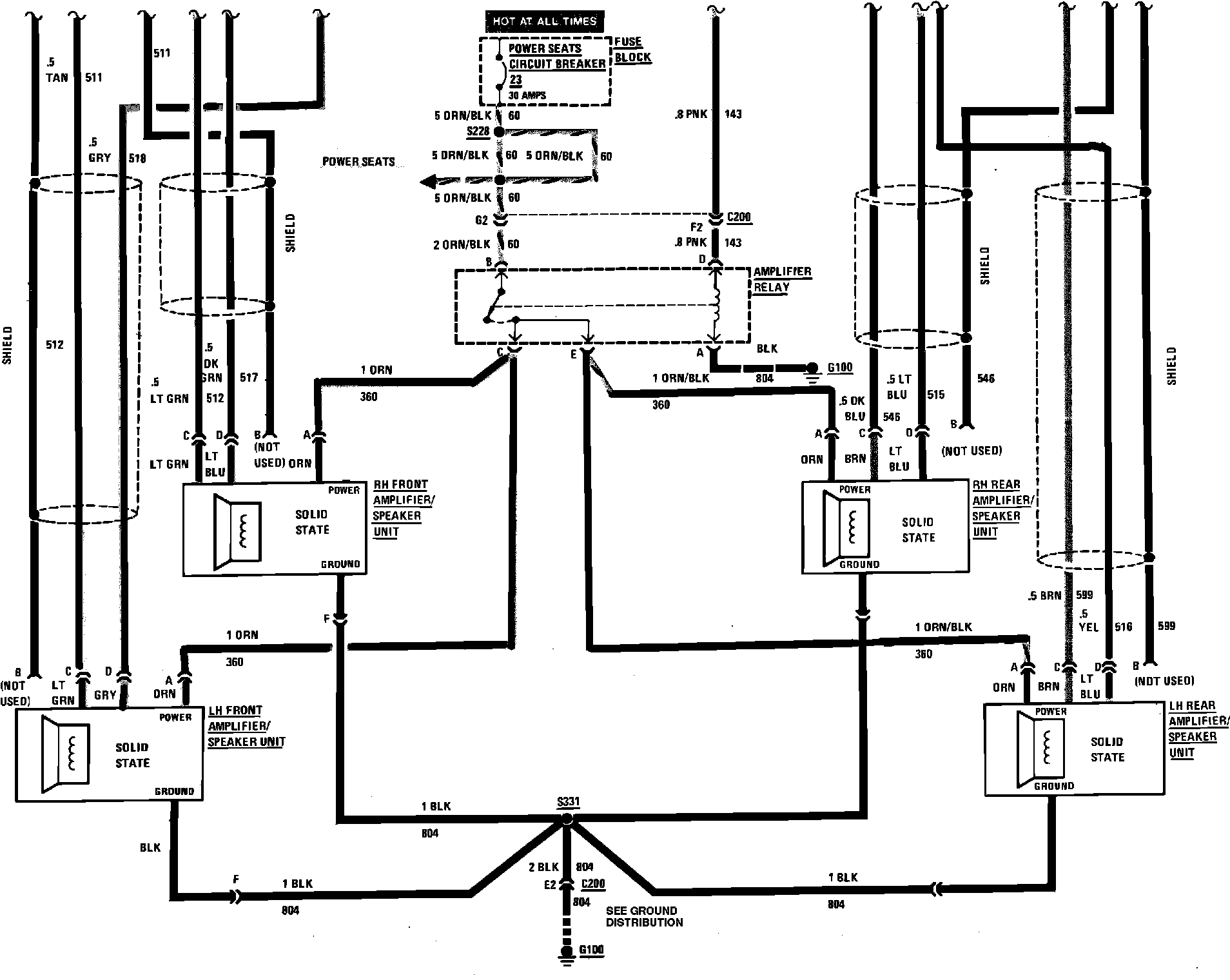 Radio Amplified Speakers Wiring Circuit (Door Mounted, Part 2 Of 2):