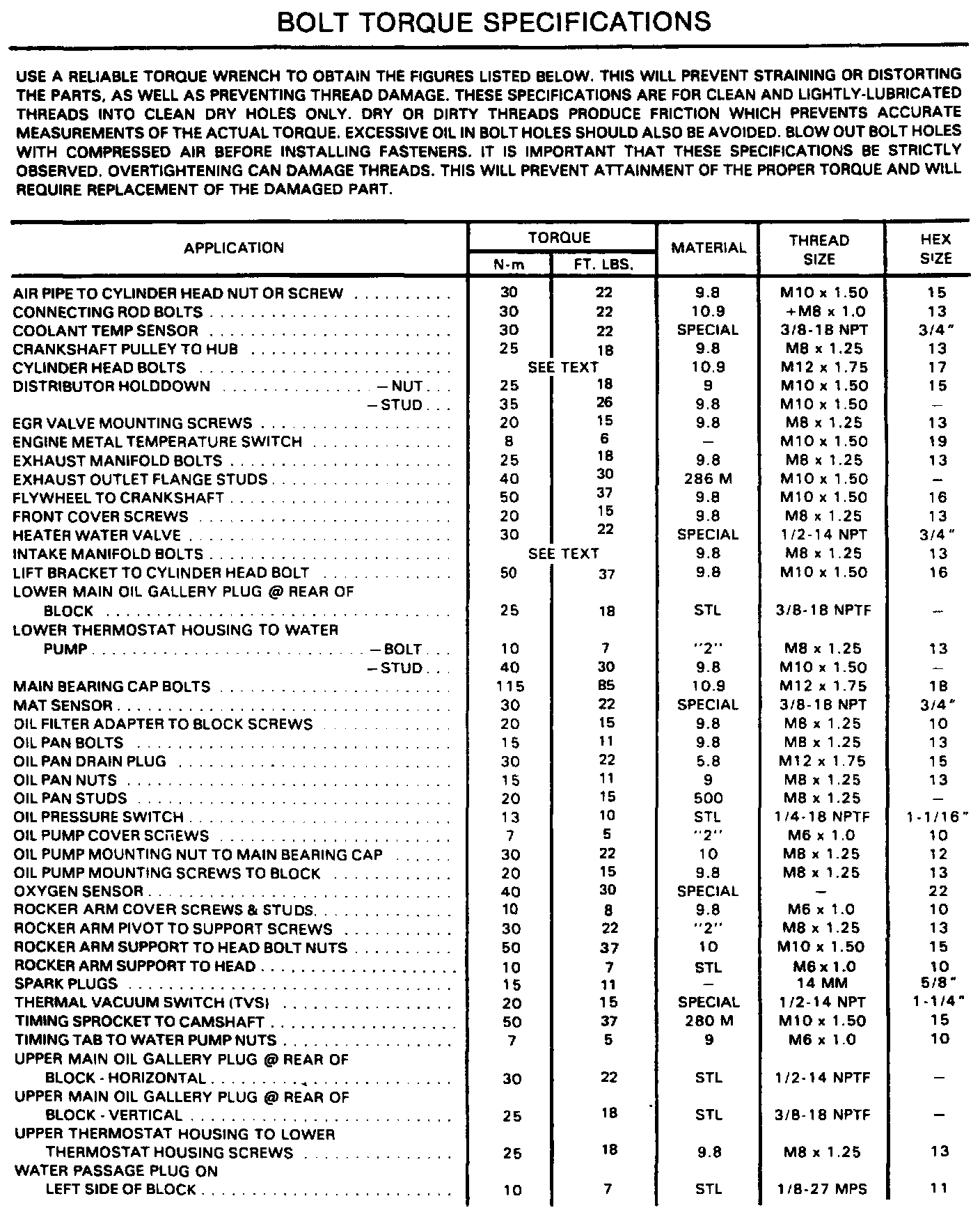 Torque Specifications: