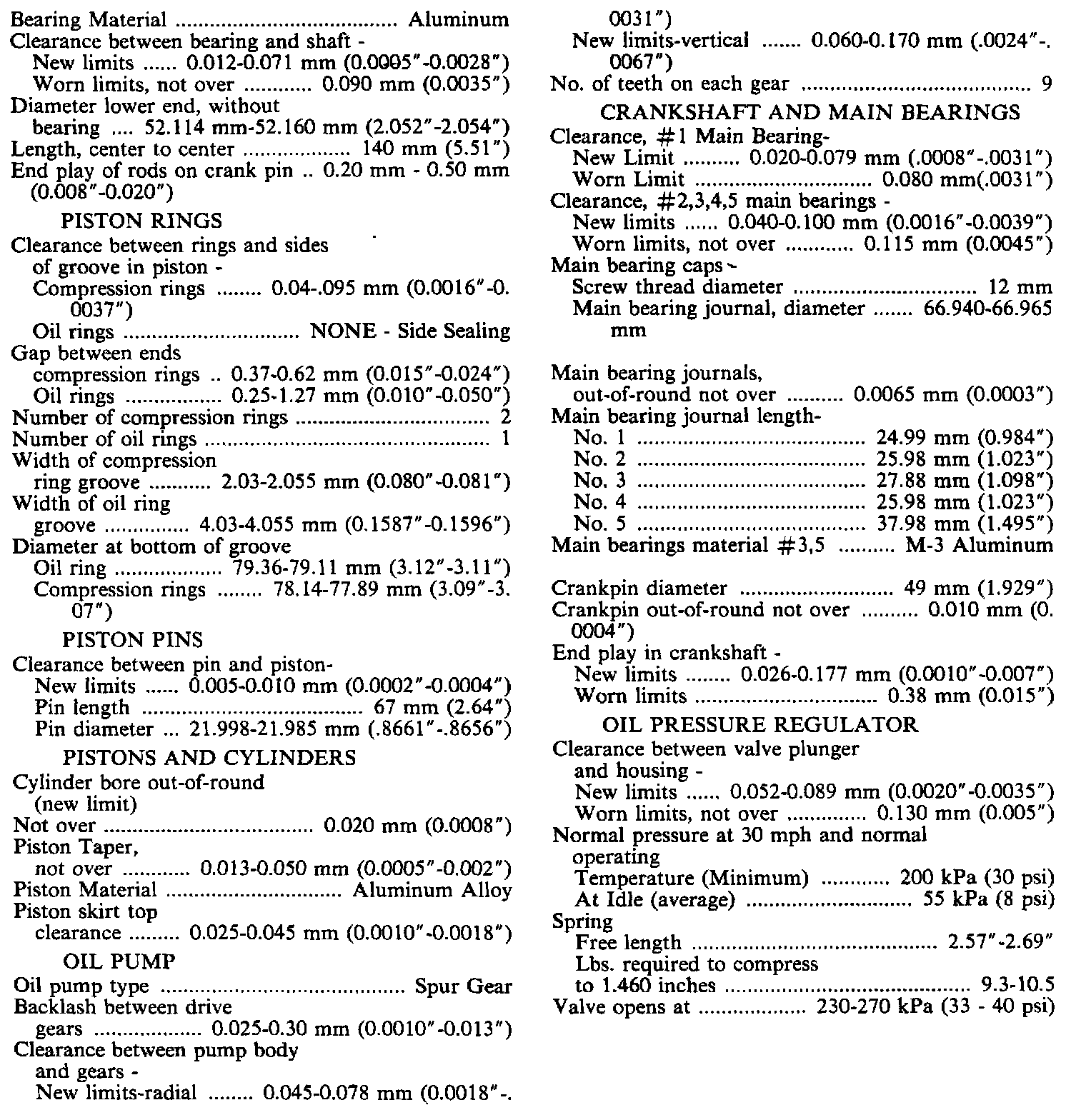 Engine Specifications: