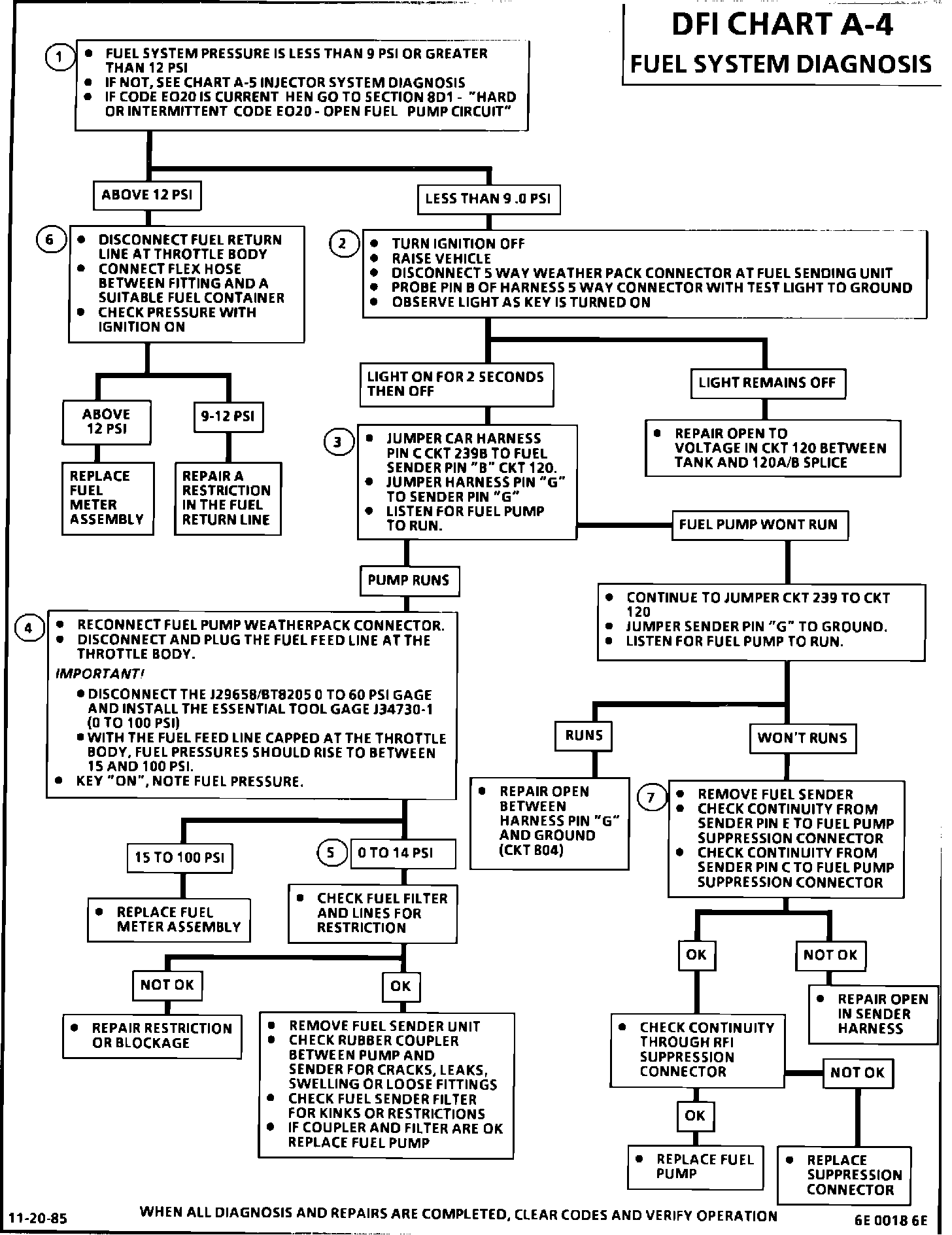 DFI Chart A-4, Section 6E, "Fuel System Diagnosis" is revised as follows::