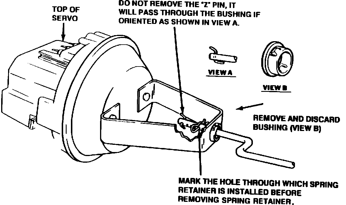 Reinstall the Servo Rod Assembly through the new bushing by positioning the "Z" pin as shown in the View "A" of Figure 2. Reinstall the original Spring Retainer in the original (marked) hole in the rod, pointing the Spring Retainer in the direction shown in Figure 4.