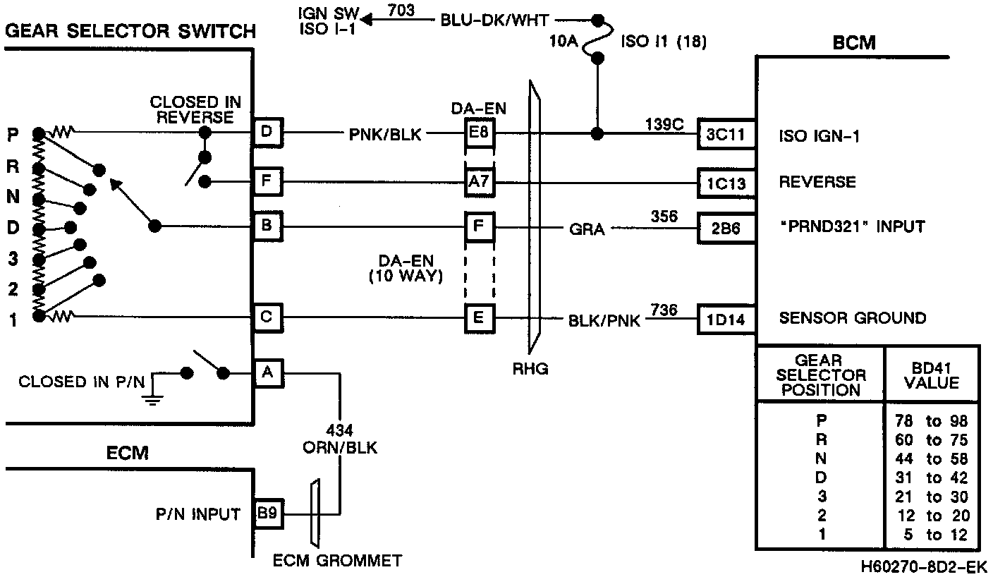 Code B127 will also set if the Park/Neutral switch signal is faulty to the Electronic Control Module (ECM). The ECM monitors the status of the switch position, which closes when the gear selector is in the Park or Neutral position.