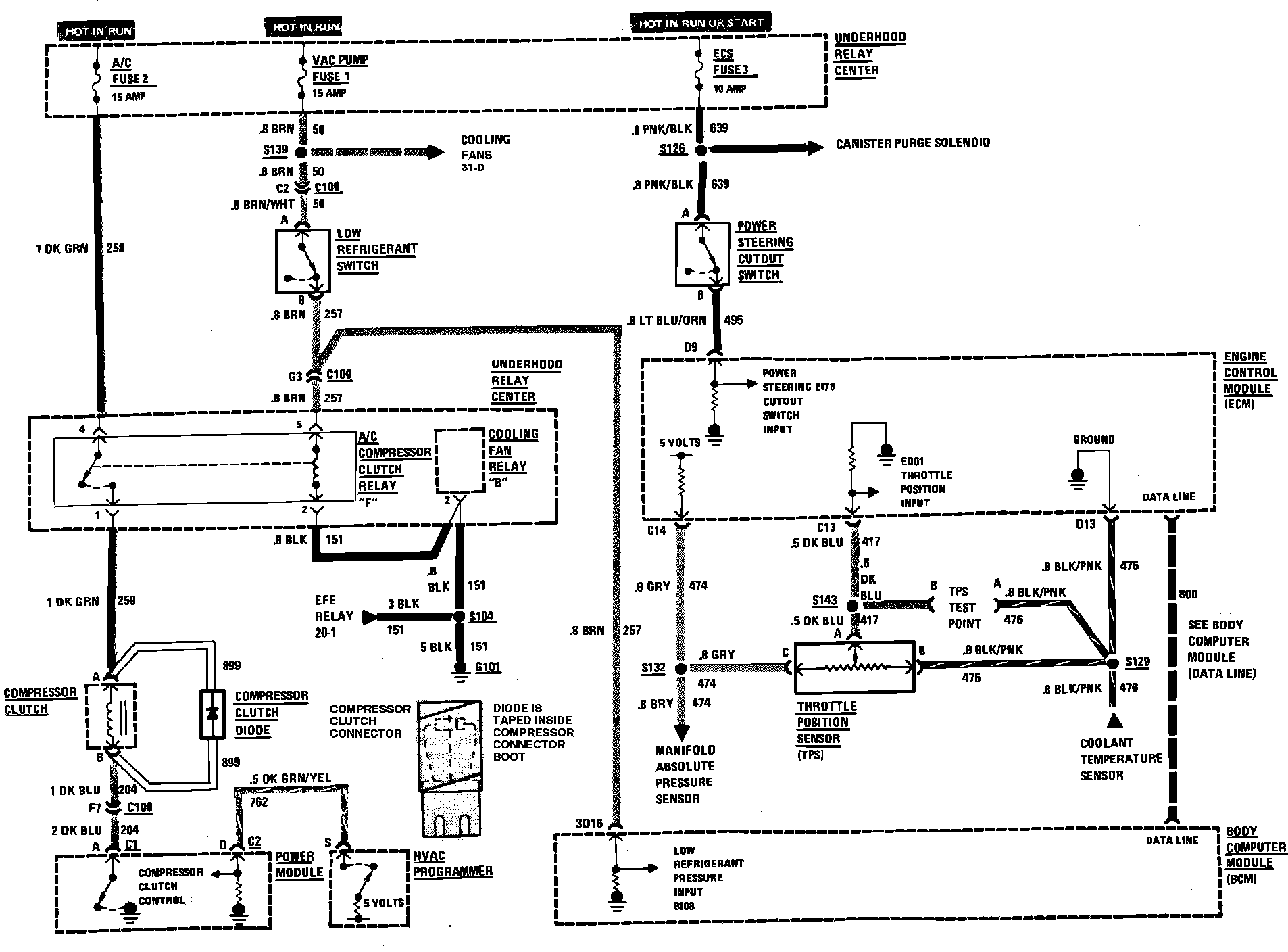 Air Conditioning Compressor Control Wiring Circuit (Early Production). W/Electronic Climate Control: