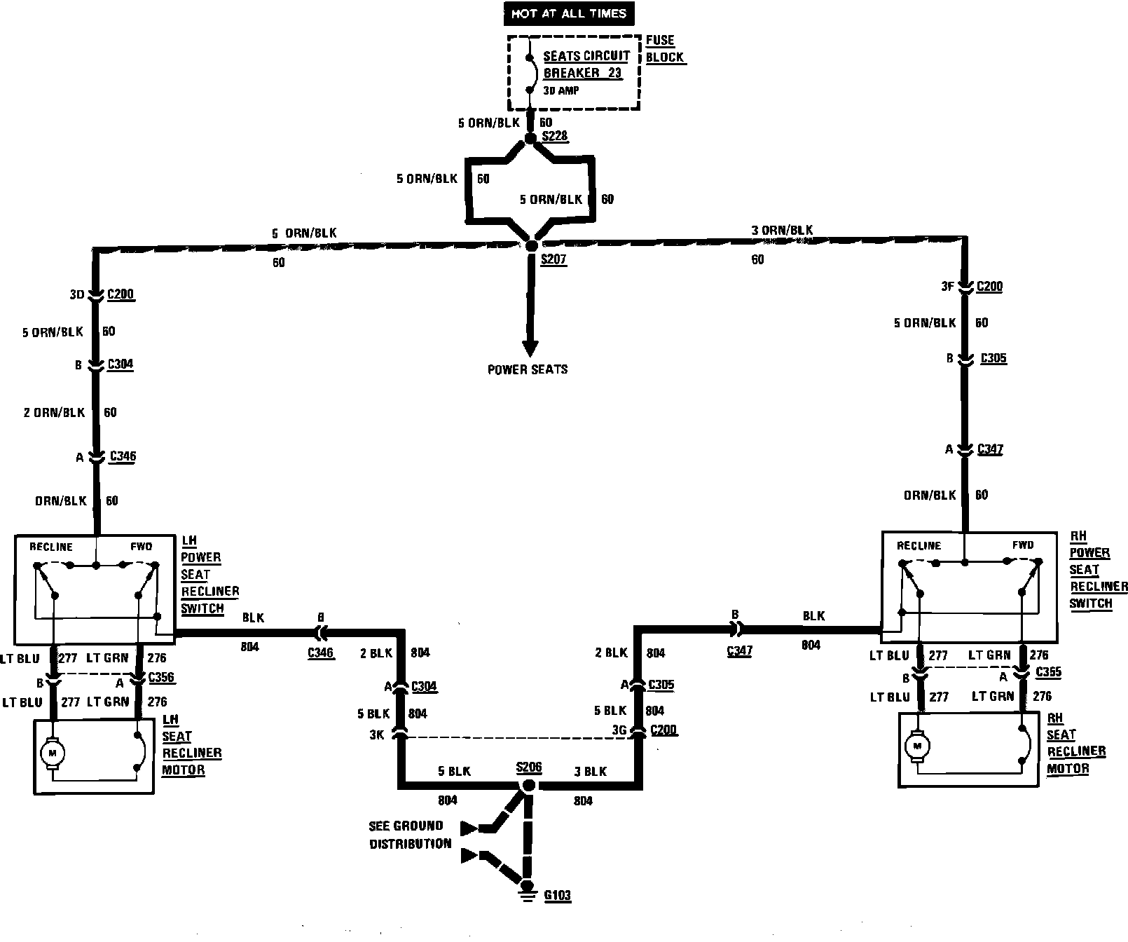 Power Seat Recliners Wiring Circuit:
