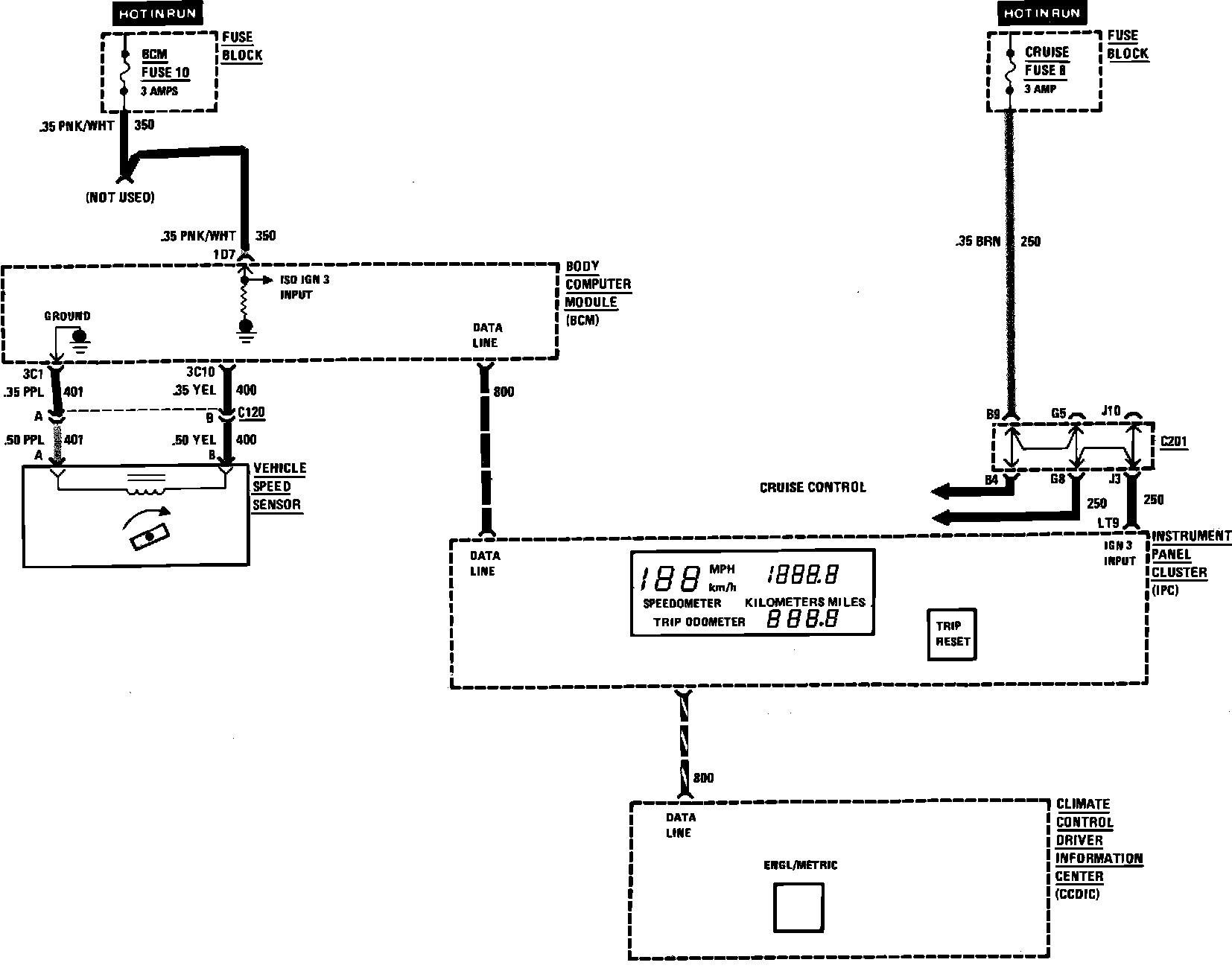 Odometer, Speedometer & Trip Odometer Wiring Circuit: