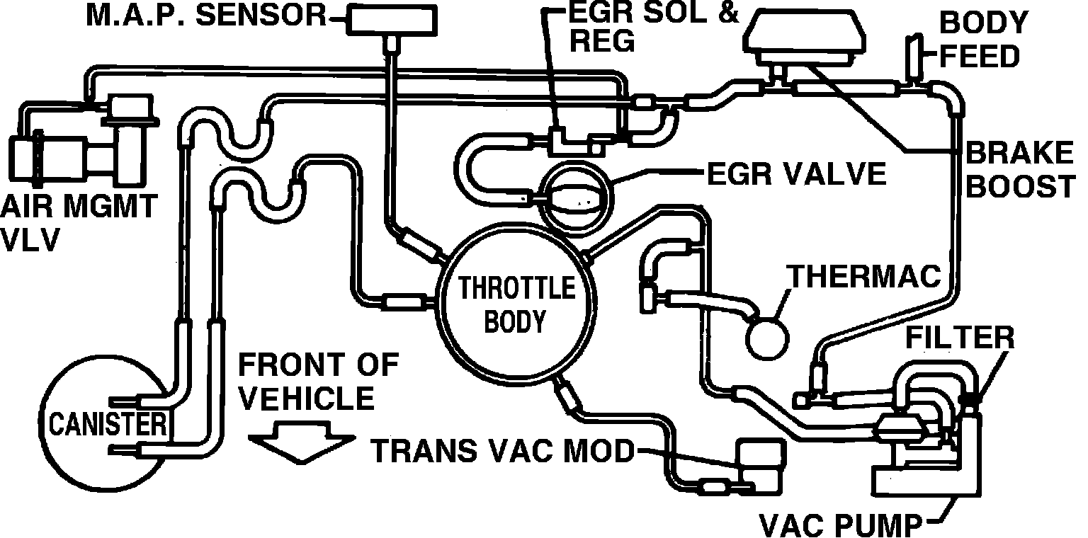Fig. 12 Vacuum Hose Routing. 1986 V8-250 (4.1L) DFI (VIN 8):