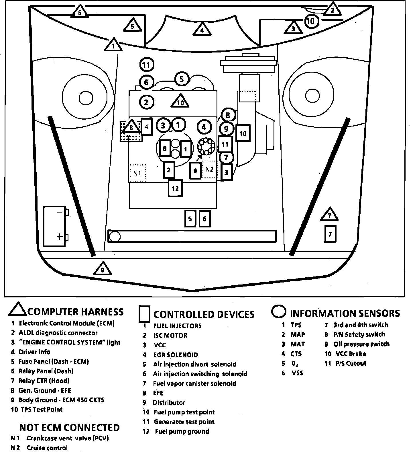 Fig. 55 Emission Component Location. 1986 Eldorado & Seville W/V8-250/4.1L, DFI: