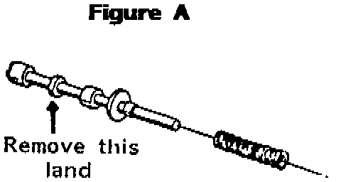 Increasing the apply pressure may not correct the shudder if there is too much converter or transmission leakage. It has been our experience that increasing the volume of apply oil to allow for the excessive leakage can be done without necessarily creating a harsh engagement. This can be done by grinding the 2nd land off the pressure regulator valve and allowing more oil flow into the converter (See Figure A).