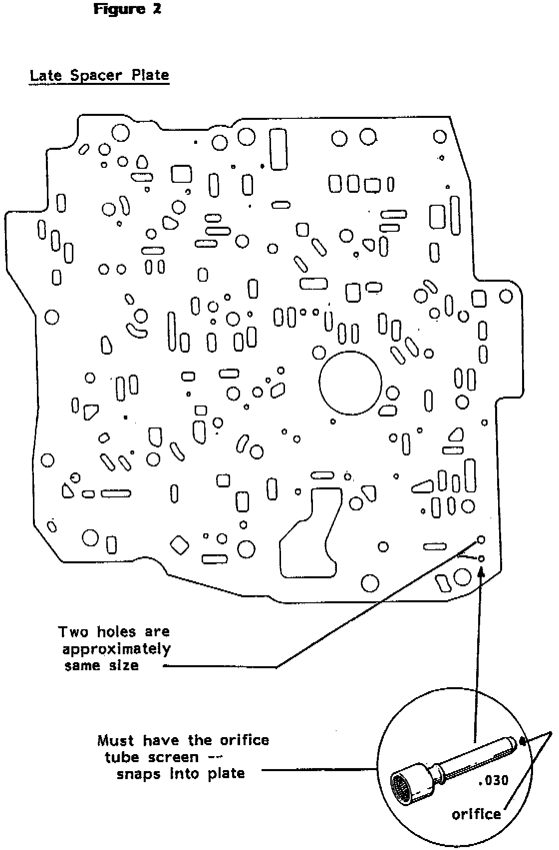 The orifice tube screen has a fine mesh screen on one end. The other end has a .030" orifice to allow a small amount of 2nd clutch fluid pressure to the TCC solenoid. (See Figure 2)